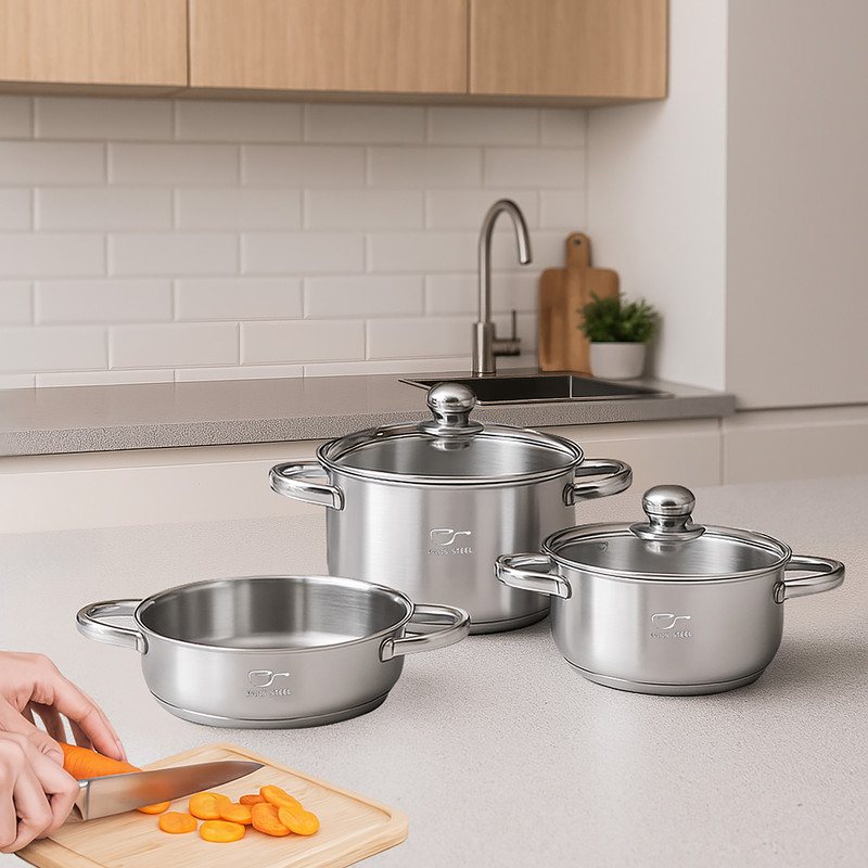 قابلمه سایز ۲۰: 1375 گرم - قابلمه سایز ۲۴: 1935 گرم- تابه سایز ۲۴: 1780 گرم