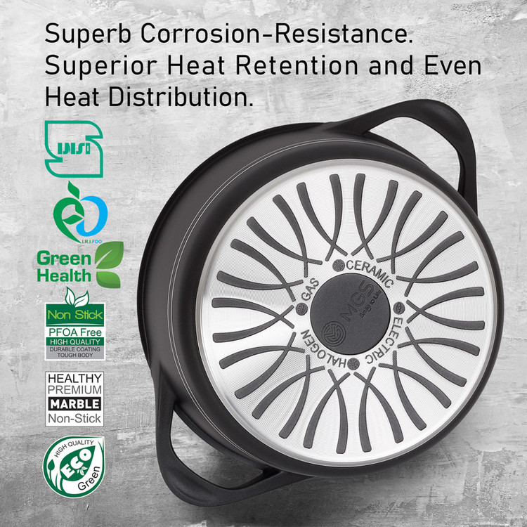 - قابلیت پخش حرارت در کف ظرف - مقاوم در برابر خوردگی - بدنه از آلومینیوم دایکست - قابل قرارگیری روی انوع شعله (گازی، برقی، القایی)