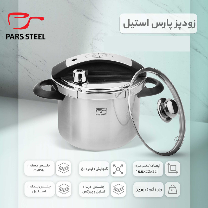 ظرفیت زودپز یا قابلمه بر حسب نفر: ظرفیت 6 تا 8 لیتر برای 4 تا 5 نفر