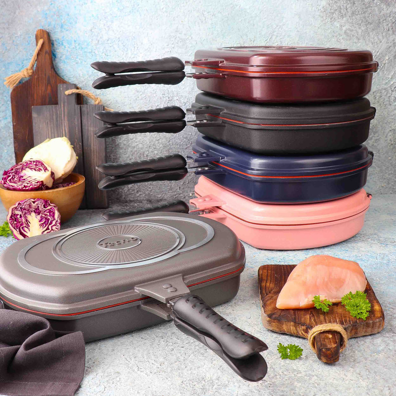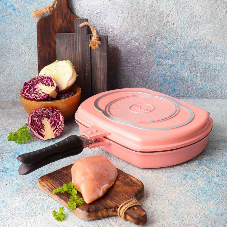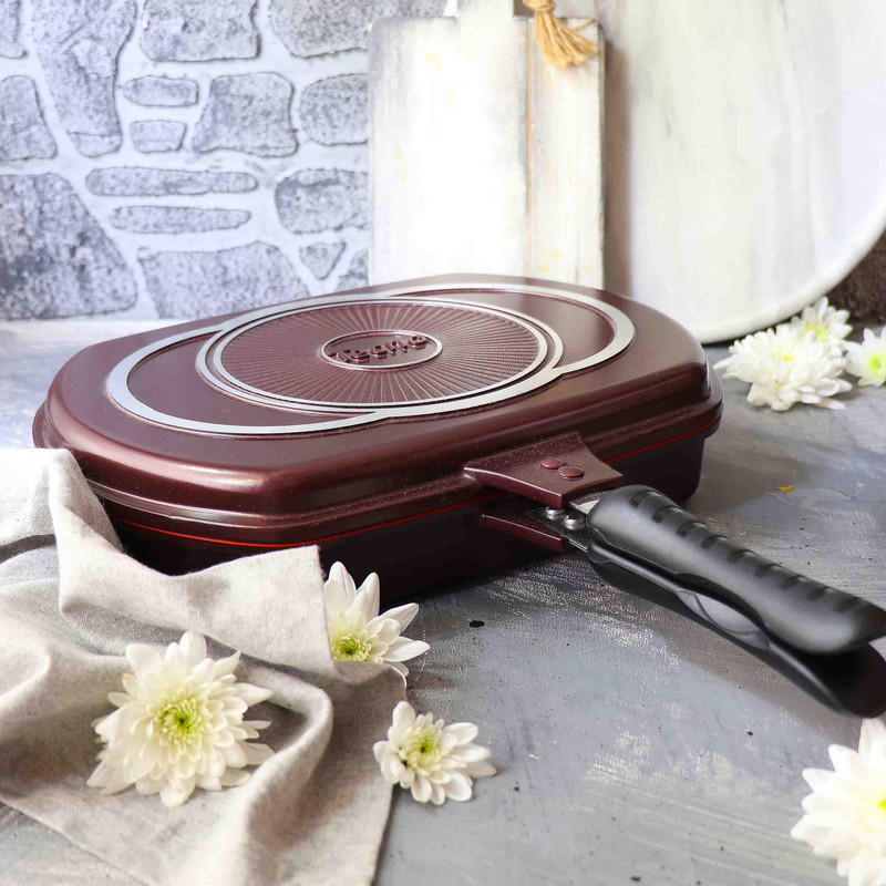 - تابه رژیمی دو طرفه دارای ابعاد 23x7x32 سانتیمتر - طول تابه با احتساب دسته 44.5 سانتیمتر - وزن تابه به تنهایی 1995 گرم است - دارای واشر سیلیکونی نسوز - دسته عایق