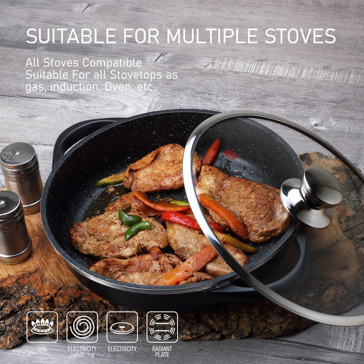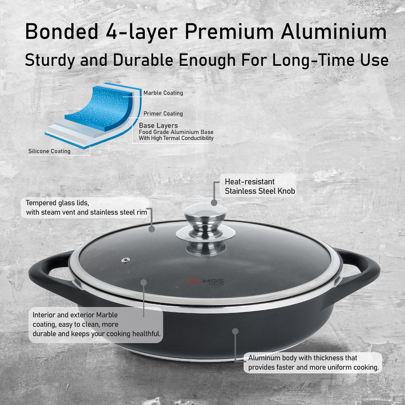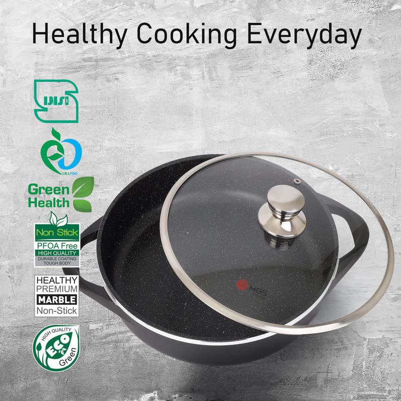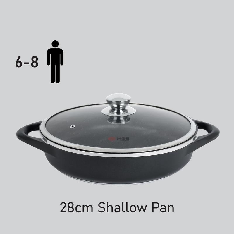 محصولات پخت و پز برند MGS در کارخانه ایران این برند تولید میگردد. قطر این تابه 28 سانتی متر است.