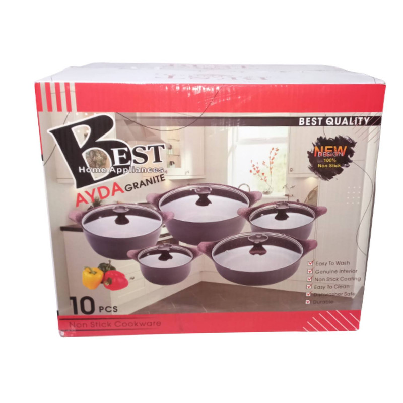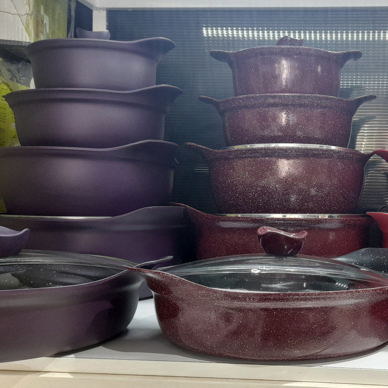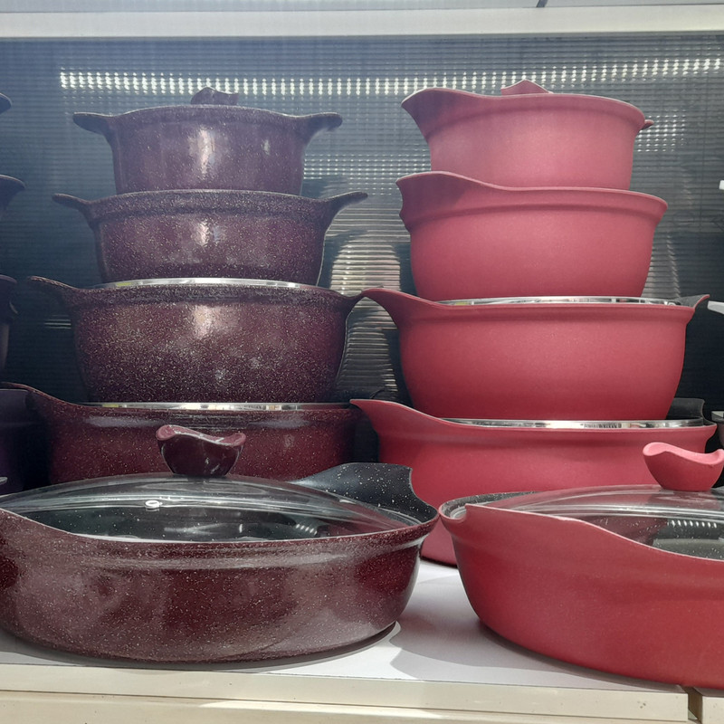 سرویس قابلمه برند بست 10 پارچه تولید شده با جدید ترین تکنولوژی روز دنیا و استفاده از با کیفیت ترین مواد اولیه میباشد . طول عمر بالا و زیبایی منحصر به فرد این محصول دلیلی برای انتخاب افراد با سلیقه میباشد. سرویس شامل 4 قابلمه درب دار با سایزهای 32 ، 28 ، 24 و 20 همچنین یک تابه درب دار سایز 32 است. این سرویس مناسب برای 2 الی 18 نفره است.