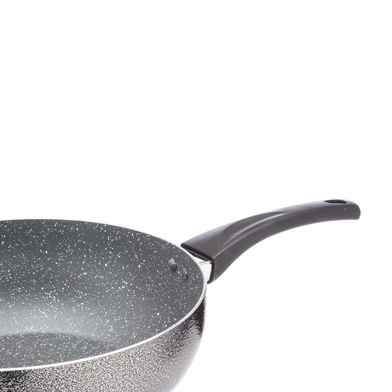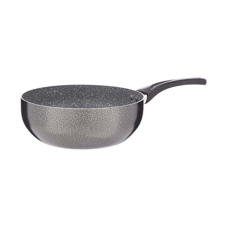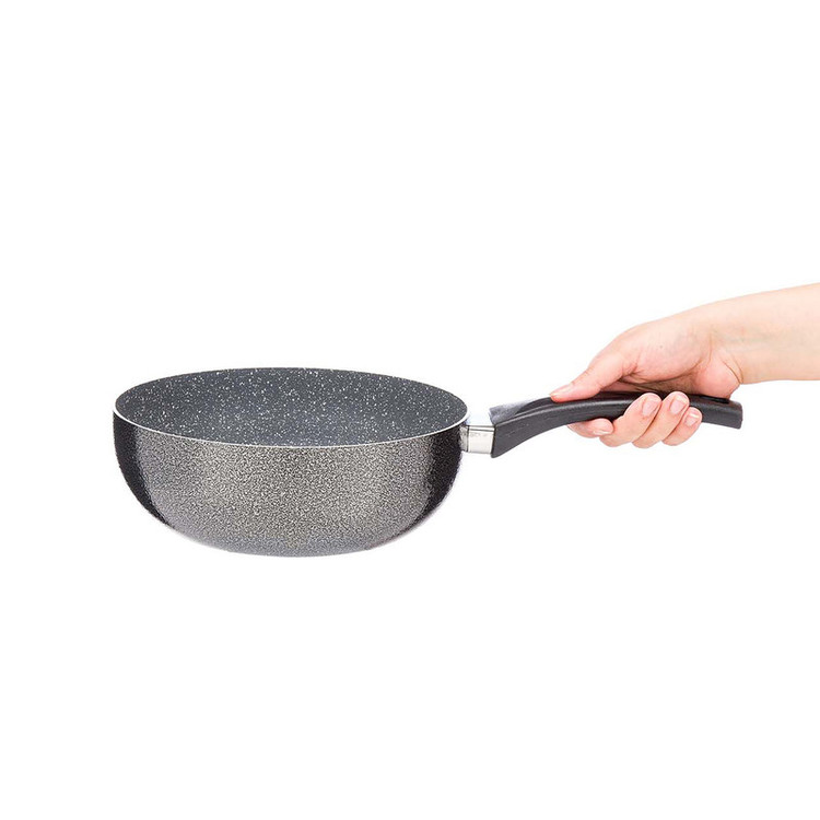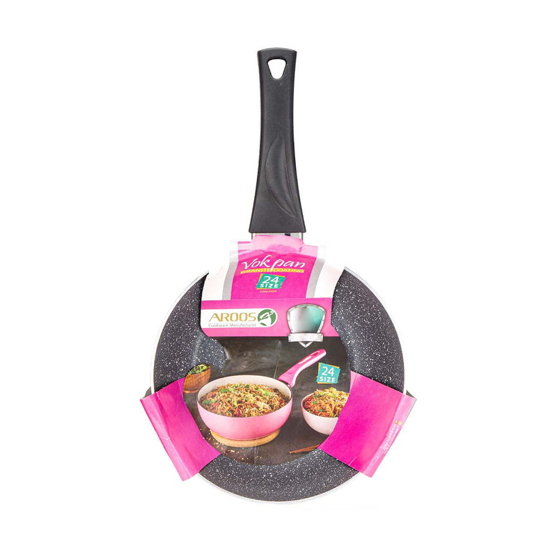 تابه سایز متوسط و قطر آن 24 سانتیمتر میباشد طول دسته 16.5 ارتفاع داخلی تابه 9.5 سانتیمتر