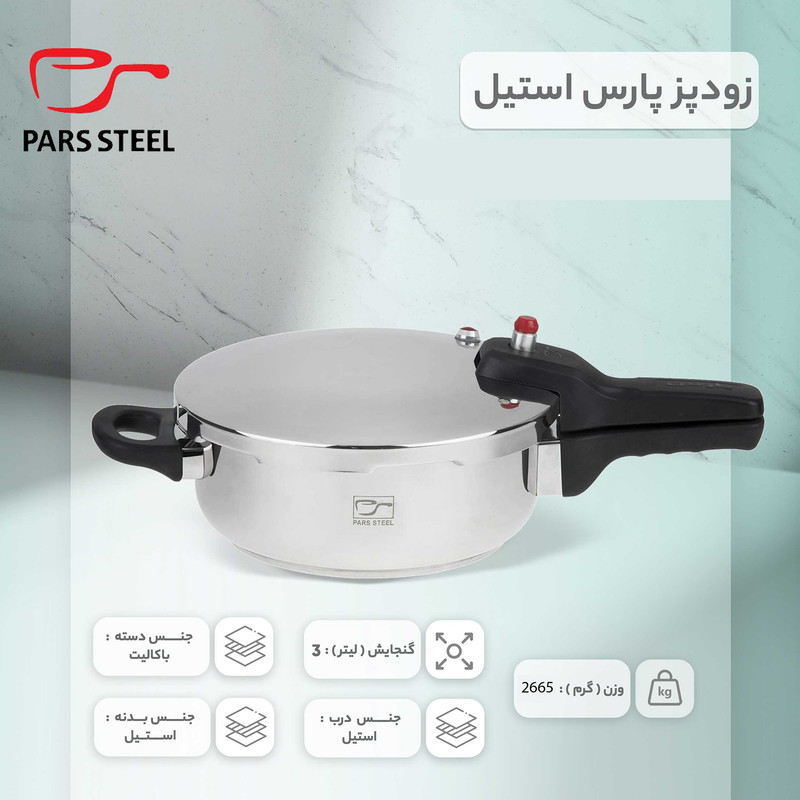 ظرفیت زودپز یا قابلمه بر حسب نفر: ظرفیت 2.5 تا 4 لیتر برای 2 تا 3 نفر