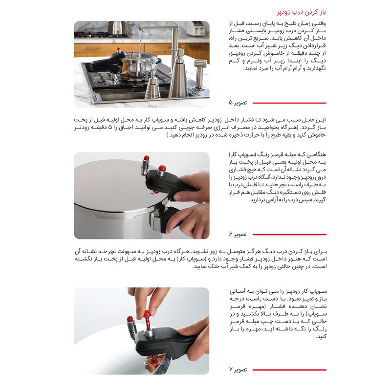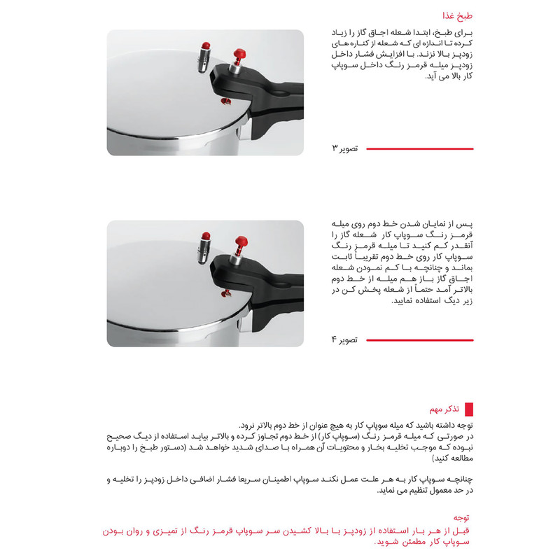 - استیل ضد خط و خش - کف سه لایه جهت جلوگیری از چسبندگی و سوختن غذا - سه سیستم تخلیه فشار جهت تامین حداکثر ایمنی - دارای نشان روی درب بمنظور آسان باز و بسته نمودن درب - قابل شستشو در ماشین ظرفشویی