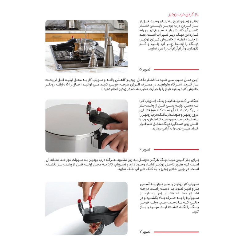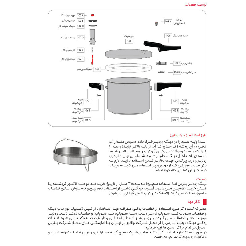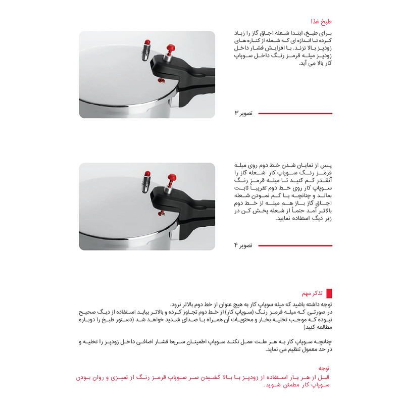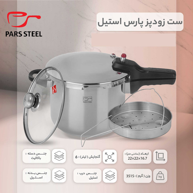- استیل ضد خط و خش - کف سه لایه جهت جلوگیری از چسبندگی و سوختن غذا - سه سیستم تخلیه فشار جهت تامین حداکثر ایمنی - دارای نشان روی درب بمنظور آسان باز و بسته نمودن درب - قابل شستشو در ماشین ظرفشویی