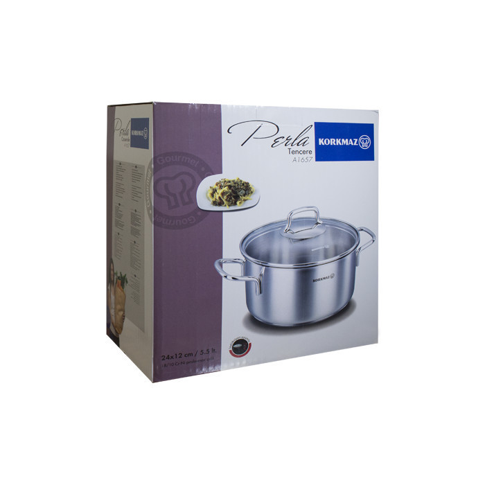 ساخت ترکیه استیل 18/10 کروم نیکل درب استیل گنجایش5.5 لیتر کفه دارای سه لایه چدن