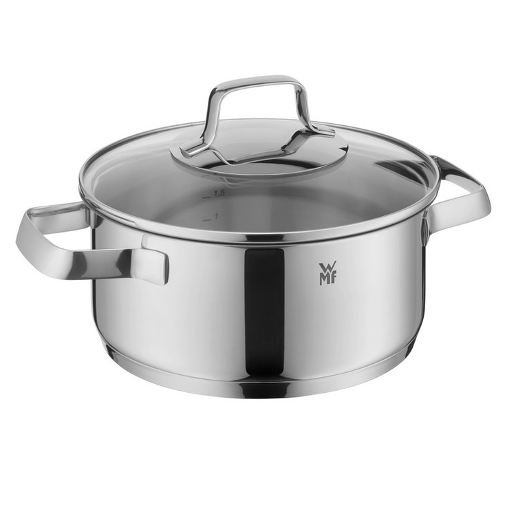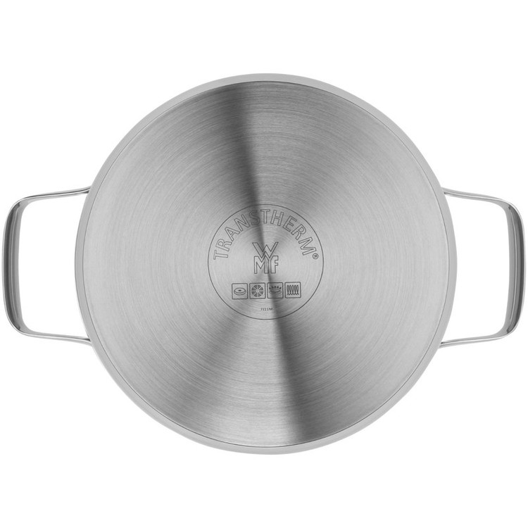 قابلمه سایز 24 سانت با گنجایش 5.7 لیتر، ساخته شده از استیل Cromargan استیل انحصاری محصولات دبلیو ام اف، قابلمه استفاده بر روی انواع اجاق: گاز، برقی، القایی، اینداکشن، قابلیت شستشو در ماشین ظرفشویی، کفه ساخته شده از سه لایه چدن، دارای درب شیشه ای