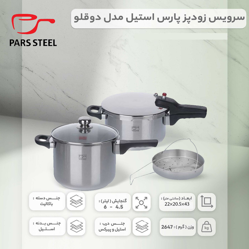 سبد بخارپز , در پیرکس , کف سه لایه , دستگیره بلند