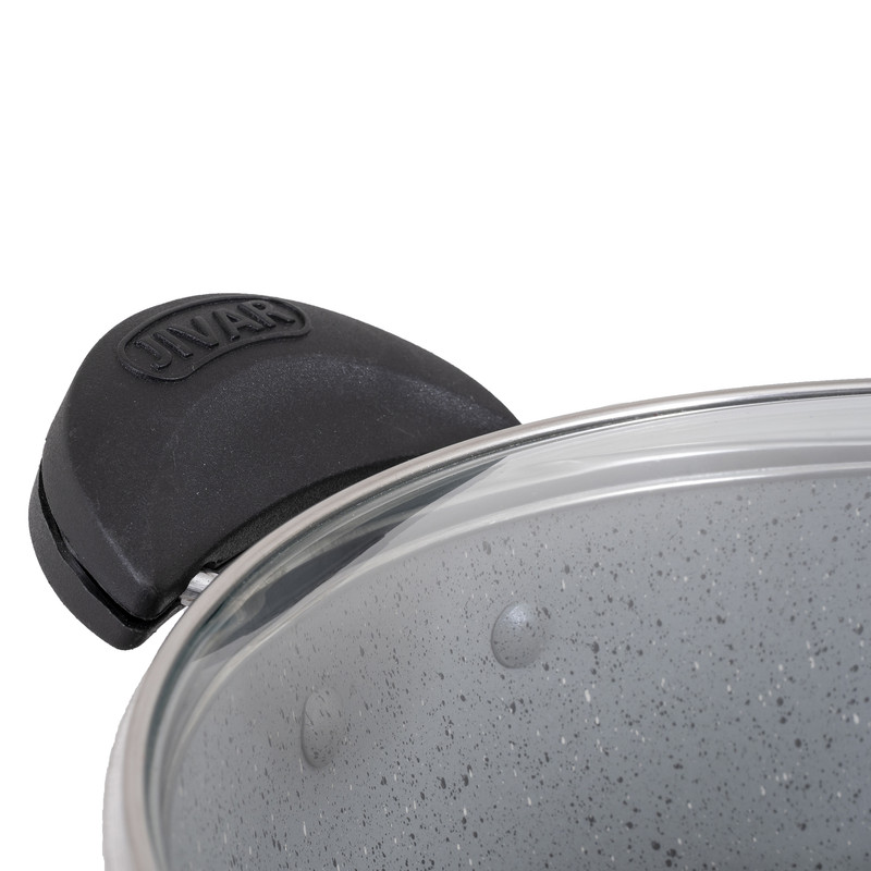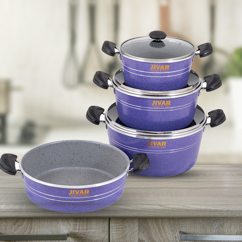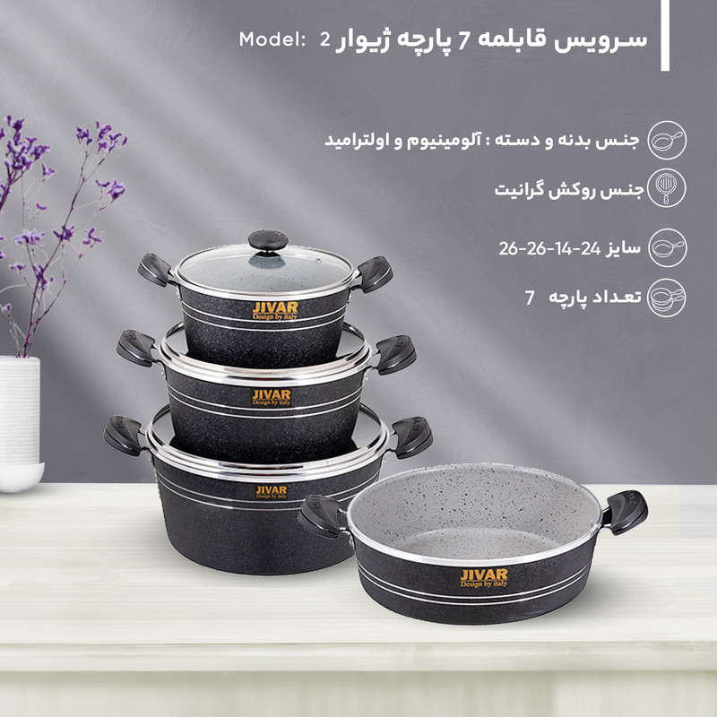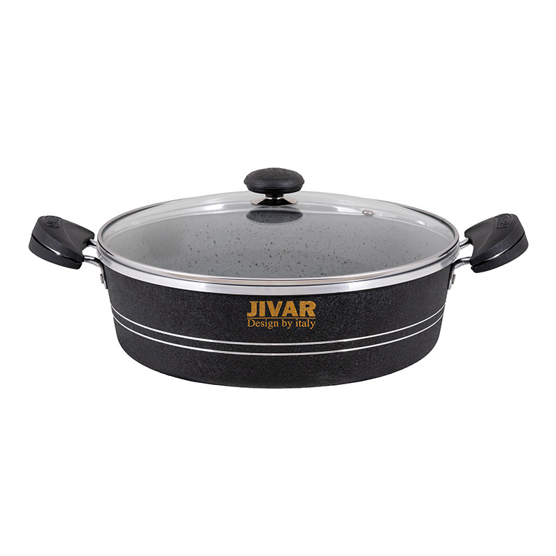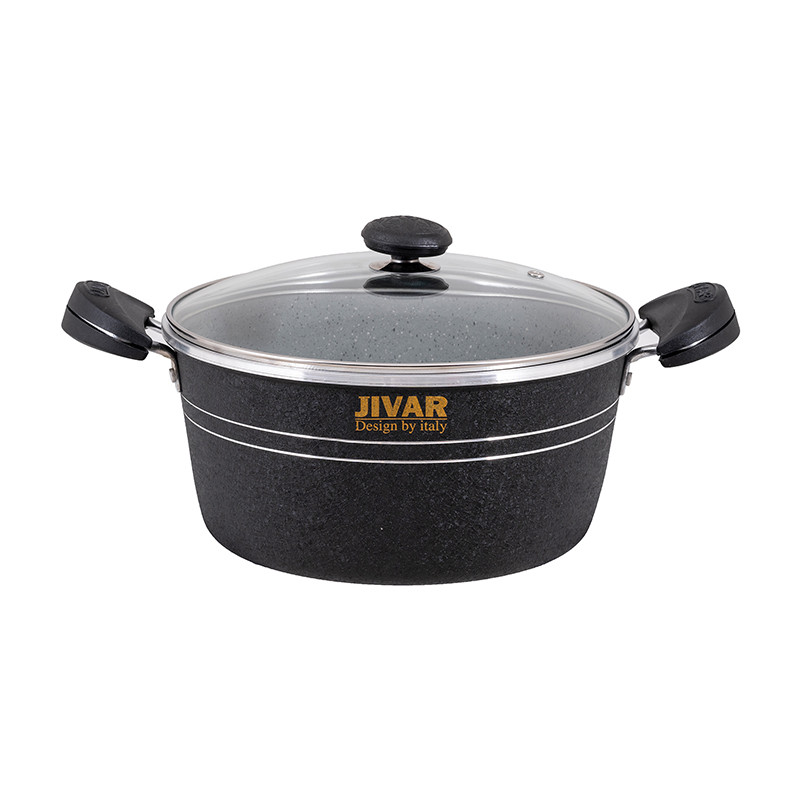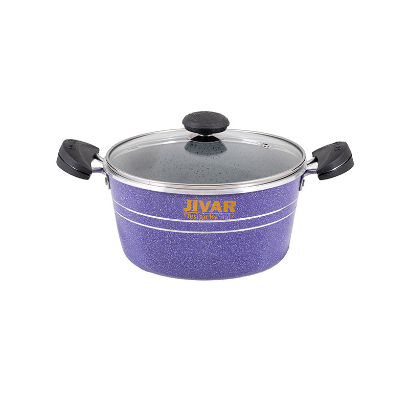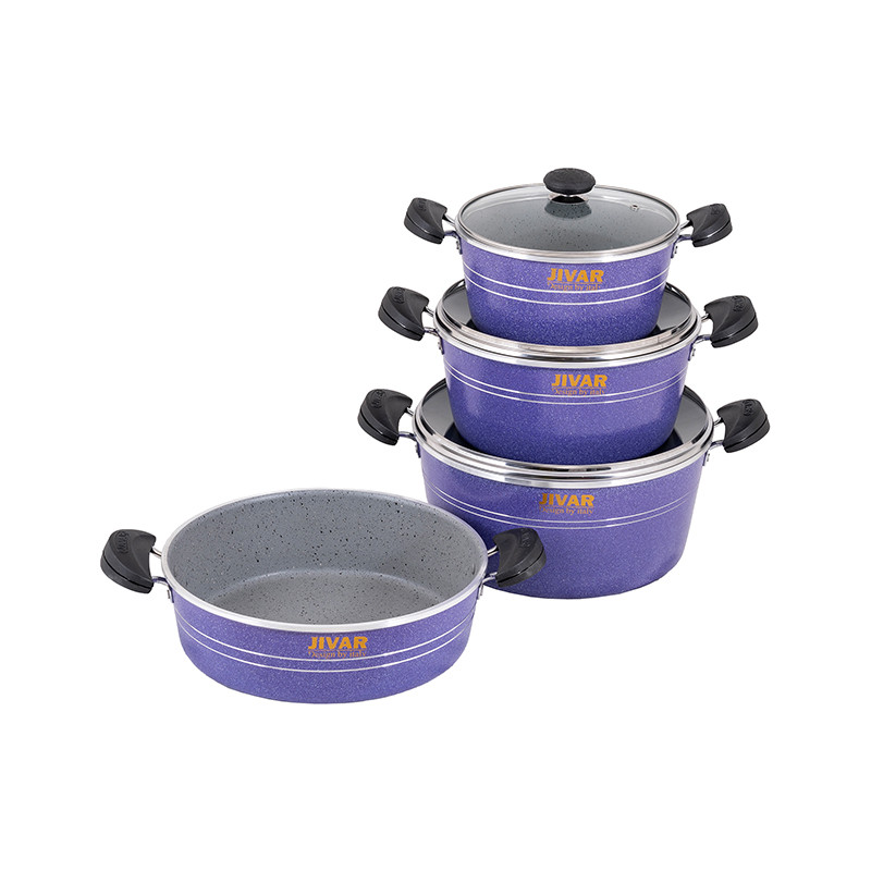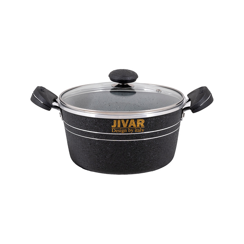 گرانیت یک صفتی است که امروزه به پوششی جدید برای ظروف پخت وپز علل خصوص قابلمه های مصرفی استفاده می شود.یکی از خصوصیات خاص این پوشش نچسبی خوب و ماندگاری تفلون در برابر حرارت شعله ی گاز است پس درنتیجه محصولات ما طول عمربالاتری خواهندداشت.همانطور که میدانیدیکی از مهمترین ابزارهای یک آشپزخانه مجهز هم برای داشتن یک پخت و پزعالی و هم حفظ شدن سلامت افرادخانواده داشتن یک قابلمه باکیفیت می باشد.دراینجا ماقراراست یک محصول شگفت انگیزبا امکانات بالارابه شما معرفی کنیم.ژیوار یک ست کامل ظروف پخت و پز(قابلمه) با دارابودن ویژگی های متفاوت مثال جنس روکش،بدنه و موادی که در ساخت آن استفاده کرده اندتوانسته جایگاه ویژه ای بین هم رده های خود پیداکند.ضخامت ست کامل 7پارچه ژیوار نسبت به استاندارد هایی که برای یک قابلمه استفاده میکنند بیشتر است و معادل 2.20به بالابکار رفته است.اهمیت ضخامت قابلمه های گرانیتی برای حفظ قابله در برابر شوک های حرارتی و در نتیجه پریدیگی و پوسیدگی را به صفر میرساند.یکی دیگر از ویژگی های خاص قابلمه های ژیواراستفاده از آلیاژخالص 99.8 درصدی که در ساخت قابلمه ژیوار به کار رفته شده باعث شده به دلیل بالابودن رسانایی آلومینیوم حرارتی بدون مانع به شما هدیه دهد.همچنین باتوجه به آلایش خطوط حک شده بر زیر قابلمه ها و آلیاژخالص طراحی شده برای قابلمه های ژیواریک حرارت کاملا کنترل شده و یکنواخت را به غذای شما منتقل میکند.تمام سعی تولید کننده قابلمه های ژیوار تولید یک محصولی است که در کنار جذابیت ظاهری کیفیت ساخت بالایی داشته باشد.رنگ های جذاب و متنوع کارشده که حاصل تفکروخلاقیت تولیده کننده ژیوار واقعا خیره کننده است وشایداصلی ترین نکته این باشد که این رنگ هاکوره ای بادرجه حرارت 230درجه سانتی گراد فیکس شده اندتا از در حرارت های غیر مستقیم شعله های گاز رنگشون دچارمشکل نشود.نوع پوشش قابلمه های ژیوار شامل سه لایه انحصاری هستندکه شامل:یک لایه آستر20-25میکرون،یک لایه رویه و2 عدد دارک که محصول آن یکنواختی و صافی بالا راداشته باشد تا استحکام و سختی بسیار بالا جهت محافظت از محصول و عدم شکنندگی ظروف راحفظ کند.دسته های قابلمه ژیوار ازموادی به نام اولترامید ساخته شده که که تا230درجه دمامقاومت میکند.دربهای شیشه ای که ازجنس پیرکس هستندهم دمای غذاراحفظ میکنندهم دربرابرسردوگرم شدن مقاومت دارد.