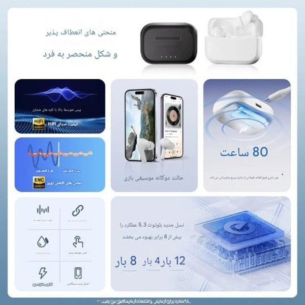 قابلیت نویز کنسلینگ: نویز کنسلینگ فعال (ANC) , نویز کنسلینگ میکروفون (ENC)