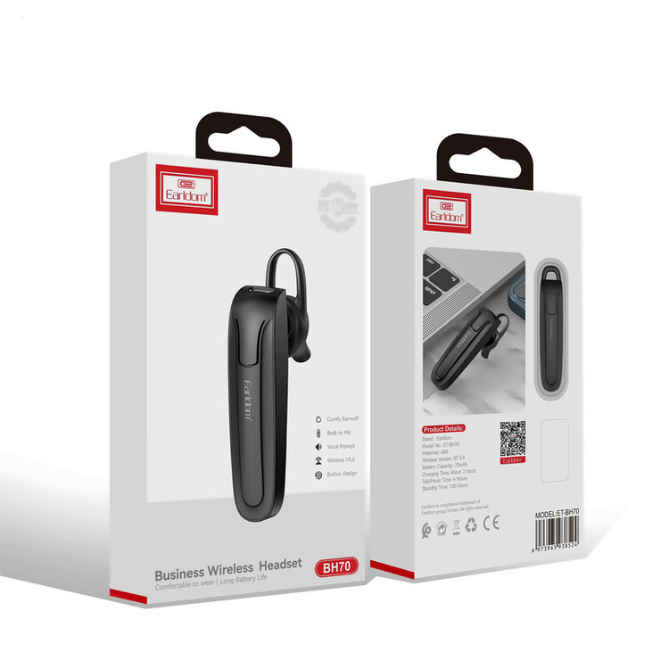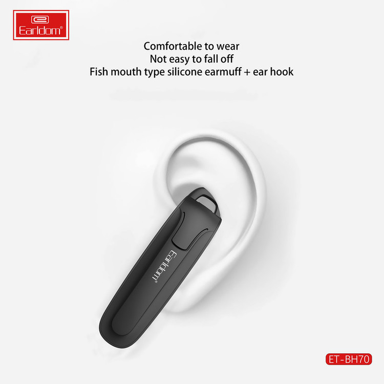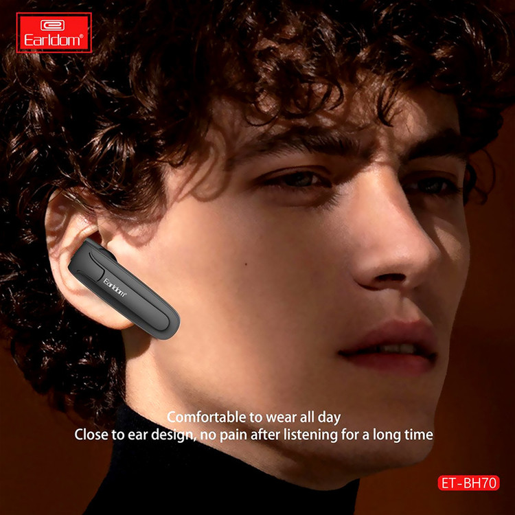 هدست بلوتوث ارلدام مدل BH70 با بهرهگیری از فناوری بلوتوث بدون اینکه نیاز به سیم داشته باشید امکان گوش دادن به موزیک و فایلهای صوتی را فراهم میکند. هدفون بلوتوث Earldom بسیار سبک و راحت است که فقط 50 گرم وزن دارد این هدفون سبک و زیبا مناسب فعالیتهای ورزشی است که باتوجه به طراحی بسیار مناسبش به هیچعنوان مانع حرکات ورزشی نمیشود. ظاهر این هدست شیک و زیباست، علاوه بر این، از یک سرگوشی سیلیکونی و یک روگوشی برای بهتر ماندن روی گوش بهره میبرد. این هدفون به بلوتوث نسخه 5 مجهز است و محدوده عملکرد آن نیز 10 متر است. باتری این هدفون 70 میلیآمپرساعتی است و در حین مکالمه میتواند حدود 4 ساعت میتواند شارژدهی داشته باشد. همچنین در حدود 2 ساعت برای شارژ شدن این هدفون زمان لازم است. این هدفون تکگوشی و مونو هست البته برای گوش دادن به موسیقی نیز میتوان از آن استفاده کرد.