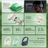 هدست RB-760HB از اتصال کابل aux پشتیبانی میکند. طراحی تاشو و وزن سبک این مدل، حمل و استفاده از آن را در هر شرایطی آسان کرده است. چه در حال ورزش باشید، چه در سفر، RB-760HB همیشه همراه شما خواهد بود.