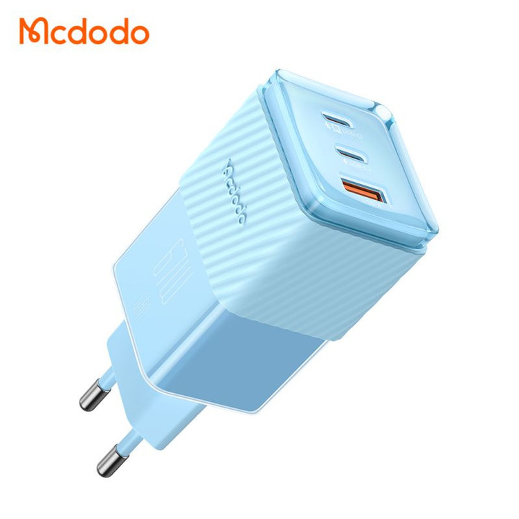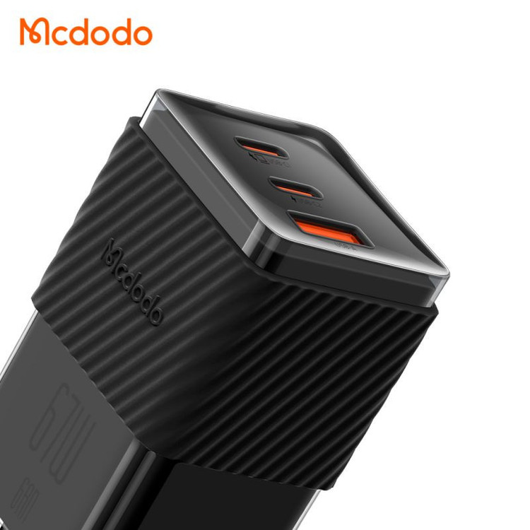 شارژر آداپتور دیواری مینی 3 پورت 67 وات مک دودو مدل MCDODO CH-150 GAN5، با ظاهری زیبا و جذاب، شارژ سریع تا حداکثر 67 وات را ارایه می دهد. این محصول دارای دو پورت از نوع تایپ سی و یک پورت از نوع USB می باشد که می تواند نیاز های متفاوت شما و مشکل کمبود پریز را برطرف سازد. استفاده از پروتکل های امن شارژ دهی موجب شده تا از آسیب به دستگاه هنگام شارژ جلوگیری شود. جنس بدنه این محصول با کیفیت از پلی کربنات ضد حریق می باشد و وزن 124 گرمی آن موجب شده برای جابجایی و حمل و نقل دچار مشکل نشوید.
