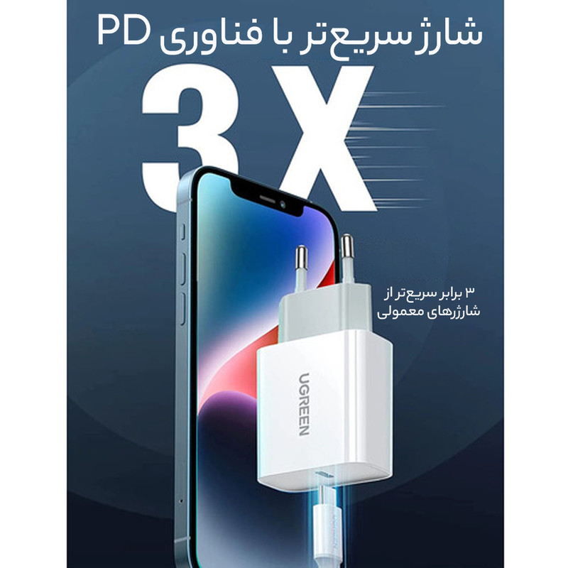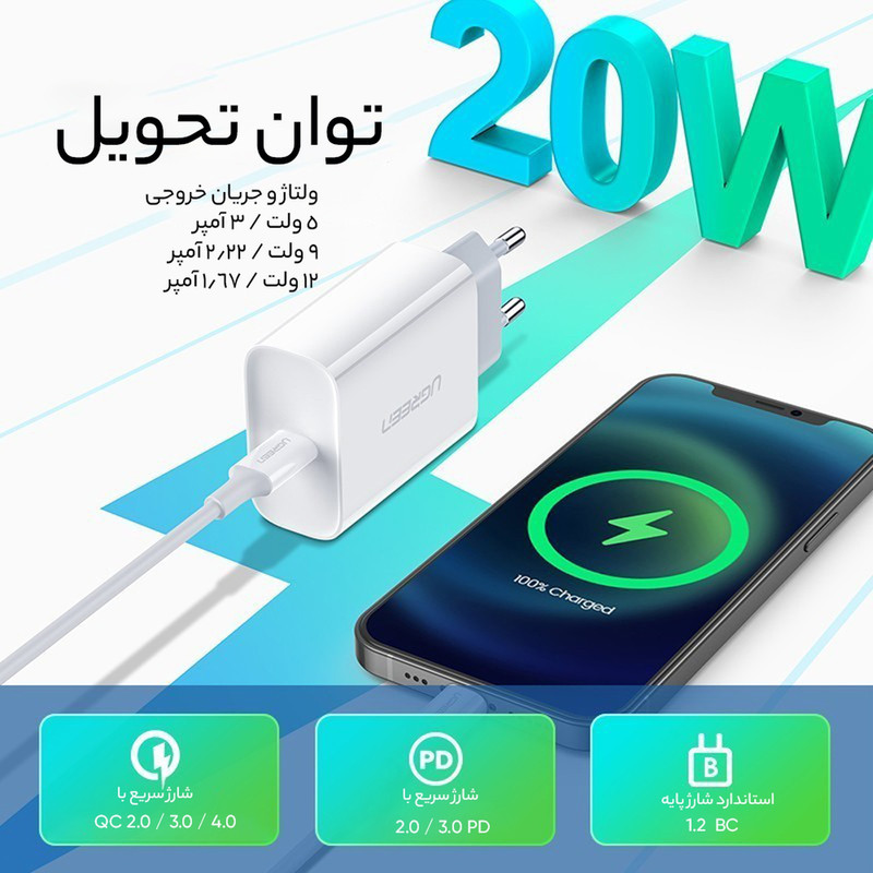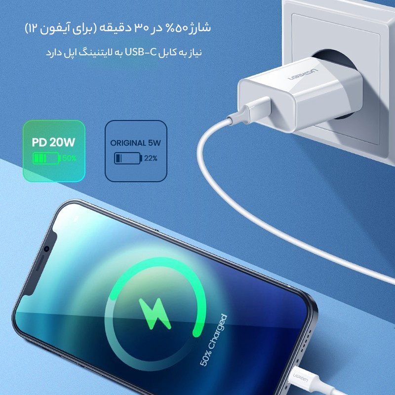 شارژر دیواری 20 وات یوگرین مدل 50698 به همراه کابل لایتنینگ