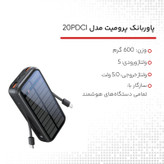 + موارد بیشتربا وجود کاربردی بودن یک پاوربانک خوب، شارژ خود پاوربانک میتواند یک معضل باشد مخصوصا اگر در شرایط اضطراری قرار داشته باشید. پاوربانک 20 وات پرومیت مدل SOLARTANK-20PDCIیکی از مدلهایی است که میتواند این مشکل را حل کند. این مدل توانایی شارژ به وسیله نور خورشید را دارد، البته در حالت عادی میتوانید از شارژ معمول هم استفاده کنید. ظرفیت ۲۰۰۰۰ میلیآمپرساعتی برای چند بار شارژ گوشی کافیست و میتوانید سایر لوازم الکترونیکی خود را هم به راحتی پر کنید. به جز اینها باید به پورتهای خروجی در کنار دو کابل متصل تایپ سی و لایتنینگ اشاره کنیم که هم کاربردی است و هم امکان شارژ چند دستگاه را فراهم میکند. در نهایت پشتیبانی از شارژ سریع و توان خروجی ۲۰ وات کمک میکند زودتر گوشی خود را شارژ کنید و مدت زیادی هم منتظر نمانید.