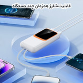مشخصات فنی : برند معتبر PZX - ظرفیت 20هزار میلی آمپر ساعت - پشتیبانی از شارژ سریع 22.5 وات - فناوری شارژ PD - دارای 2 درگاه USB - دارای یک درگاه Type C - دارای دو کابل متصل