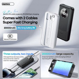 پاوربانک ریمکس مدل Fast Charge 2way ظرفیت 20000 میلی آمپر ساعت به همراه کابل USB-C و لایتنینگ