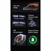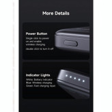 مشخصات فنی : ابعاد: 16×65×104 میلیمتر وزن: 188 گرم ظرفیت اسمی: 10000 میلیآمپر ساعت جنس بدنه: آلیاژ آلومینیوم + ABS درگاه خروجی: تایپ C (حداکثر 20 وات) و پد شارژ وایرلس (حداکثر 15 وات)