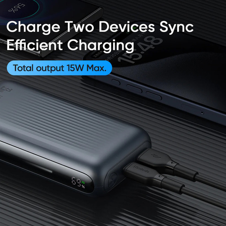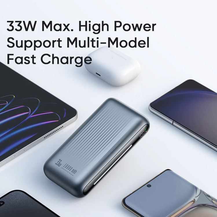 ظرفیت 10 هزار میلی آمپر توان خروجی 33 وات جریان خروجی 3 آمپر دارای صفحه نمایشگر دو پورت خروجی تایپ سی و USB-A