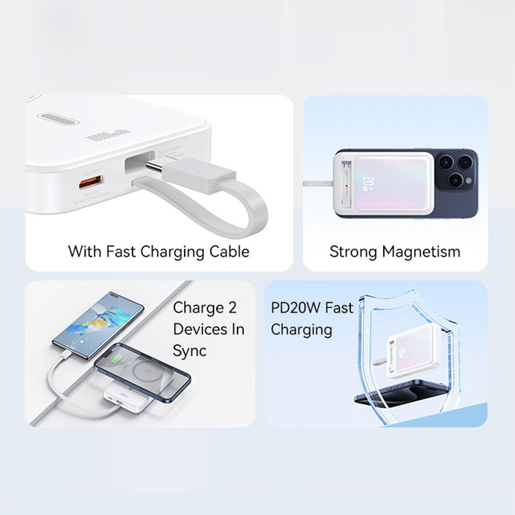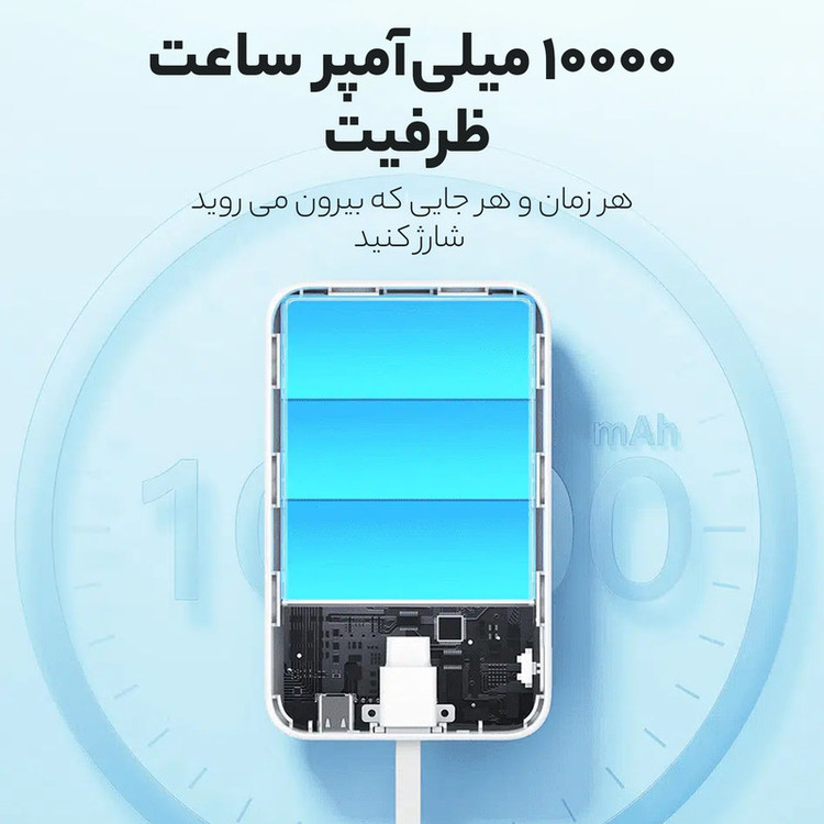 این پاوربانک درواقع یه پورت خروجی دارد (یک پورت تایپ سی - قسمت وایرلس و مگنتی پاوربانک - کابل تایپ سی متصل به آن)