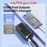 مشخصات فنی : دو پورت ورودی از نوع Type-C و Micro سه پورت خروجی شامل دو پورت USB-A و یک پورت Type-C دارای چراغ ال ای دی بند آویز محکم خروجی QC 22.5W خروجی PD 20W ورودی 18 وات