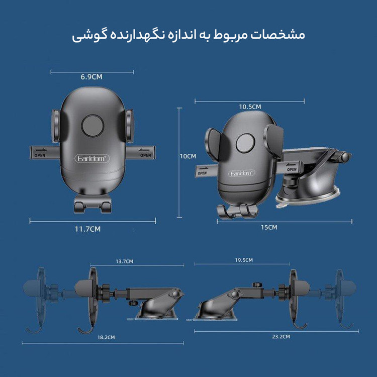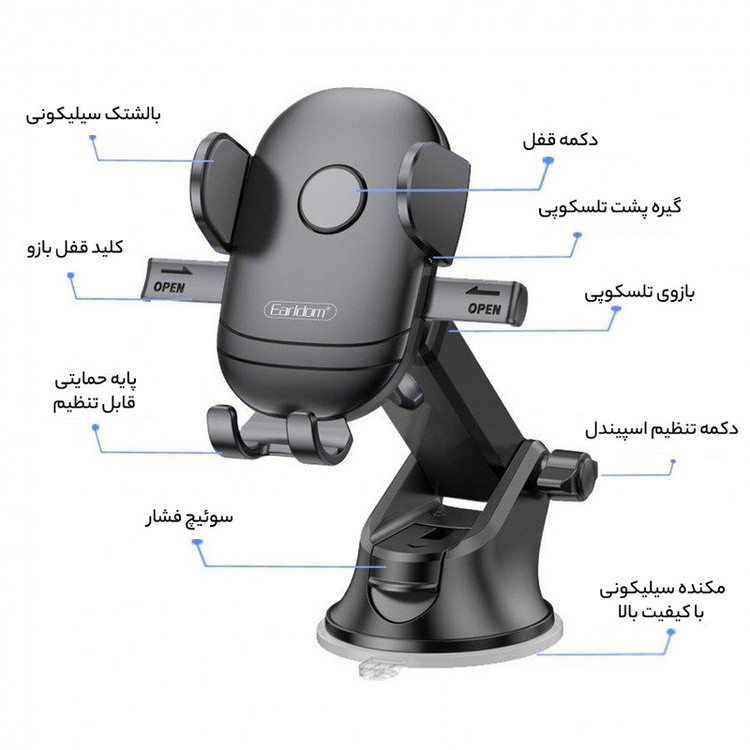 قابلیت تنظیم ارتفاع متناسب با وضعیت کاربر، امکان اتصال به سطوح صاف مانند داشبورد و … از طریق پایه چسبی