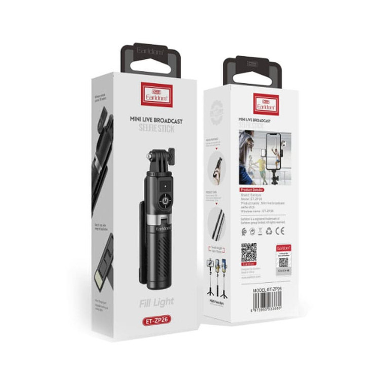منوپاد حرفه ای ارلدام ساخته شده از فولاد با قابلیت اتصال بلوتوثی برای کنترل دوربین دارای باتری داخلی قابل شارژ و چراغ یا فلاش ال ای دی دو رنگ سفید و زرد با قابلیت ترکیب رنگ و تنظیم میزان نور که یک قابلیت منحصر به فرد می باشد