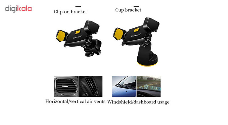 هولدر یا نگهدارنده وسیله ای کاربردی برای نگهداری گوشی داخل ماشین، روی میز یا روی دوچرخه است. انواع پایه های نگهدارنده نگهداری گوشی را برای رانندگان آسان کرده است و با استفاده از این وسیله، توانستهاند بدون اینکه مشکلی در هنگام رانندگی از گوشی خود کاملا ایمن محافظت کنند. استند گوشی ارلدام EH44، کاملا ساده و زیبا طراحی شده است که باعث میشود تا بدون آنکه فضای زیادی را داخل خودرو اشغال کند، به راحتی از آن استفاده کنند. استفاده از استند ارلدام برای کاربران بسیار ساده خواهد بود. قرار دادن و بیرون آوردن گوشی هوشمند از این نگهدارنده تنها با یک دست امکان پذیر است. استند خودرو ارلدام در قسمت جلویی خودرو و روی پنجره کولر ماشین نصب می شود. به همین دلیل ممانعتی برای رانندگی ایجاد نمی کند و رانندگاه می توانند بدون مشکل به رانندگی بپردازند. همچنین این استند باعث می شود رانندگان ضمن اینکه هنگام رانندگی به جاده و منظره پیش روی خود به خوبی دید دارند، بتوانند به راحتی صفحه نمایش گوشی خود را ببینند و در صورت لزوم با دستگاه هوشمند خود کار کنند. استند ارلدام با اغلب خودروها سازگاری دارد. به طور دقیق تر باید گفت این پایه نمایش با خودروهایی که دارای پنجره تهویه هوا با خطوط افقی هستند سازگاری دارد. بنابراین اگر خودروی کاربران بدون پنجره تهویه هوا در قسمت جلویی است با طرح روی پنجره تهویه هوای آن افقی نیست این پایه نمایش مناسب آن ها نخواهد بود. استند گوشی ارلدام برای بسیاری از دستگاه های هوشمند موجود در بازار کاربرد دارد و افراد می توانند گوشی های هوشمند بین 4.0 تا 6.0 اینچ را روی این نگهدارنده نصب کنند. لبه های تعبیه شده در دو طرف نگهدارنده متناسب با ابعاد گوشی تنظیم شده و دستگاه هوشمند را به خوبی در خود حفظ می کند. یکی از مزایای این هولدر این است که برای نگهداری گوشی فقط چهار گوشه آن را درگیر می کند. بنابراین کاربران می توانند به همه پورت ها و کلیدهای گوشی به راحتی دسترسی داشته باشند. به همین دلیل امکان اتصال گوشی به شارژ حین قرار داشتن روی استند وجود دارد و کاربران می توانند به راحتی کابل شارژ را به گوشی هوشمند خود متصل کنند.