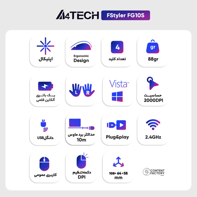 ماوس بی سیم ای فورتک مدل FStyler FG10S