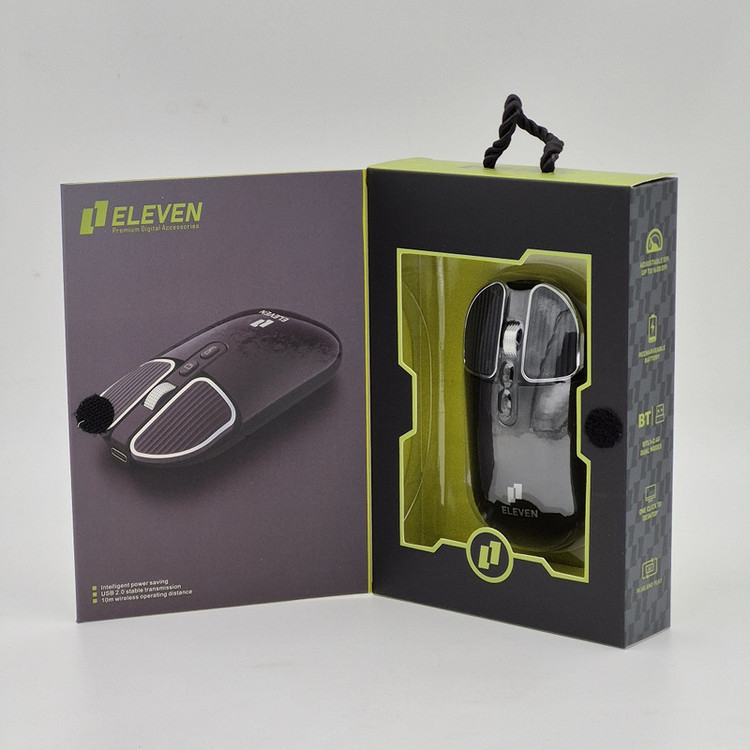 یکی از قابلیت های این ماوس شارژی بودن آن هستش که دیگر نیازی به عوض کردن باتری ندارید و با 2 ساعت شارژ میشود حدود یک هفته استفاده کرد، البته میزان شارژ رابطه مستقیمی با مقدار استفاده و فاصله ایی که این ماوس تا گیرنده دارد البته با تمام شدن شارژ، شما به راحتی میتوانید با کابل TYPE-C آن را شارژ کنید. یکی از قابلیت های دیگر ماوس مثل دیگر ماوس جدید برند ELEVEN ارتباط دوگانه، یعنی هم بلوتوث و هم دانگل هستش که شما در آن واحد میتواند این ماوس را به یک وسیله ایی که بلوتوث دارد و یک دانگل را به وسیله ای دیگر وصل کنید و از این ماوس استفاده کنید.این ماوس 5 کلید بوده و یک کلید مخصوص برای افرادی که صفحه های زیادی باز میکنند دارند که به نام (BACK TO DESKTOP FAST BUTTON) شناخته میشود دارد، با فشوردن این دکمه تمام صفحاتی که روی صفحه دستکتاب باز هستند بسته میشوند و به پایین میروند. در ضمن کلید های این ماوس سایلنت هستند.