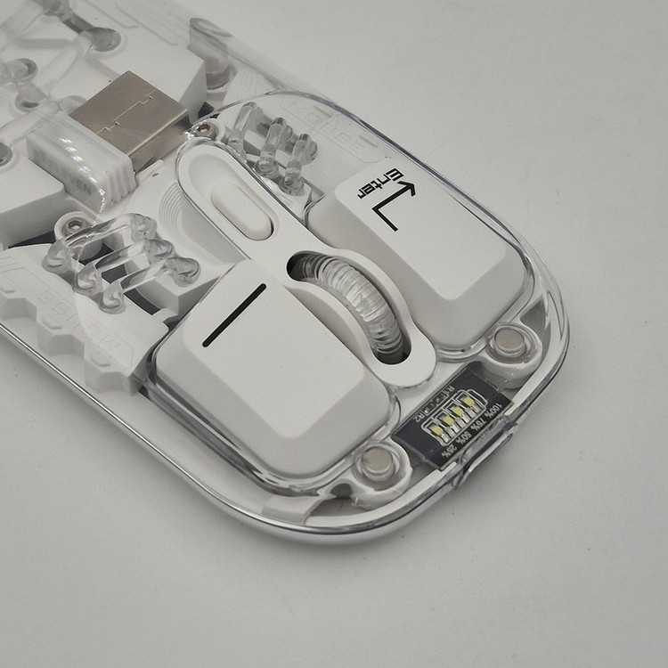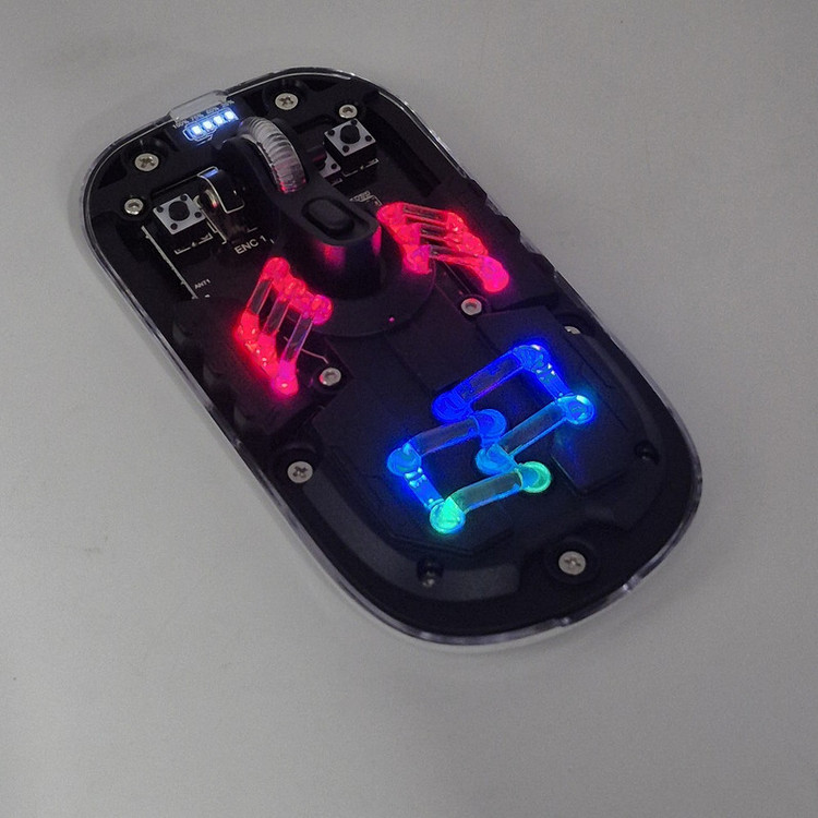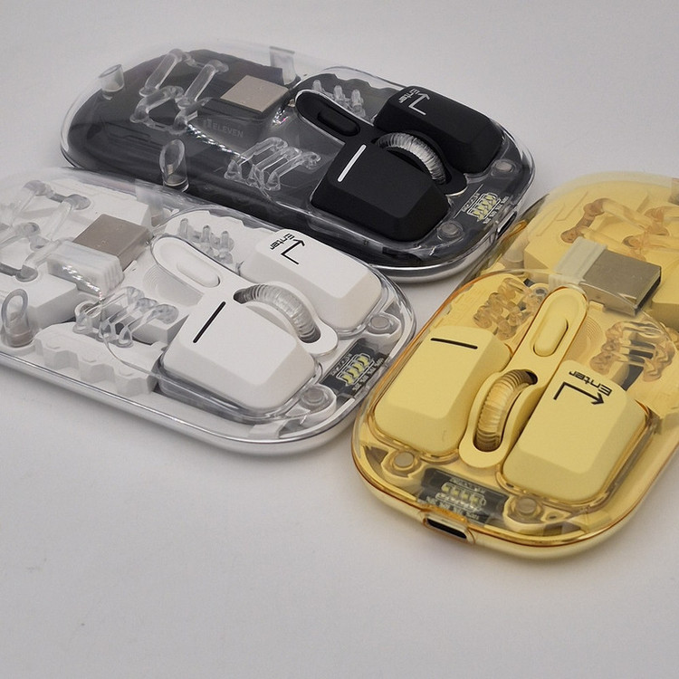 ماوس WM913 برند ELEVEN یکی از جدید ترین محصولات سال 2024 این برند هستش. این ماوس جدید فانتزی مجموعه ای از آپشن های مورد نیاز را دارد و یک ماوس همه چیز تمام هستش. WM913 ماوس شارژی هستش که شما را از خرید باتری بی نیاز میکند داخل خودش یک باتری 400 میلی آمپری هستش که در صورت استفاده مداوم و از فاصله نزدیک تا یک هفته میتوانید استفاده کنید بعد از اتمام شارژ آن جای نگرانی نیستش چون این ماوس با درگاه TYPE-C شارژ میشود و شما به راحتی میتوانید آن را شارژ کنید.این ماوس قابلیت نمایش میزان شارژ را دارد تا دیگر در حین کار شارژ ماوس تمام نشود. از دیگر کارایی های فوق الهاده آن قابلیت اتصال همزمان یک دانگل و یک بلوتوث به صورت همزمان هستش که با کلیدی که در زیر ماوس هستش شما میتوانید انتخاب کنید تا با چه استانداردی وصل شوید. شما در آن واحد میتوانید به یک تلویزیون و یک کیس یا غیره وصل شوید.درب این ماوس به صورت مگنتی هستش که باعث میشود عمر خیلی زیادی داشته باشد و دانگل داخلش قرار میگیرد که دیگر گم نشود. نورپردازی RGB این با دکمه ایی که زیر آن قرار دارد قابل عوض کردن هستش که ده مود رنگبندی جذاب دارد