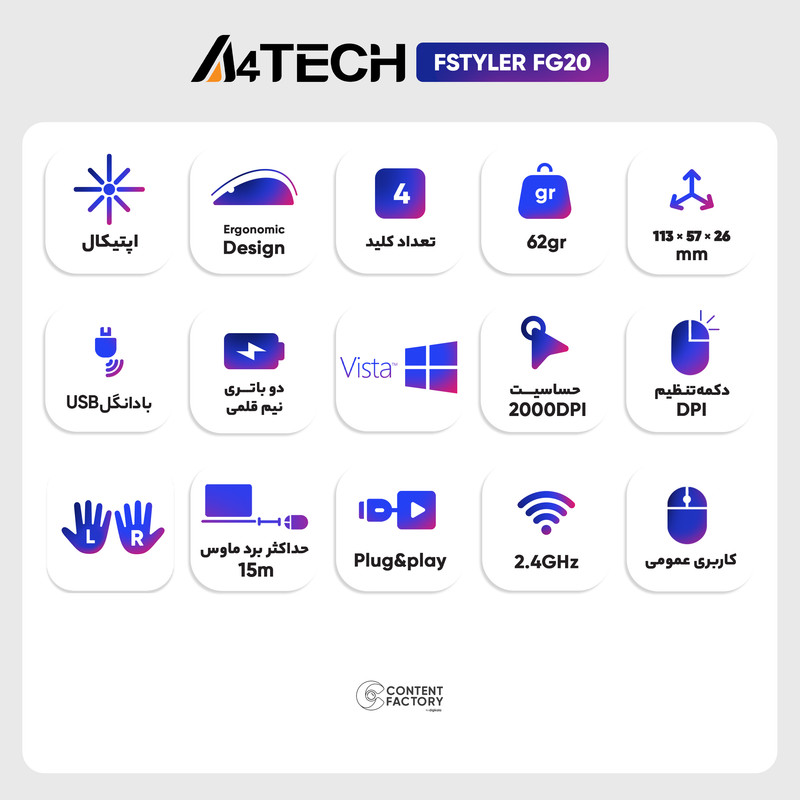 ماوس بی سیم ای فورتک مدل FSTYLER FG20