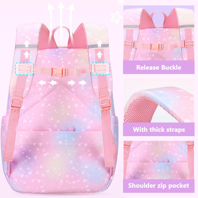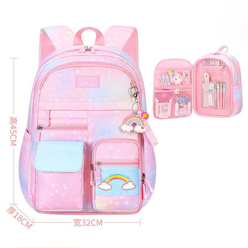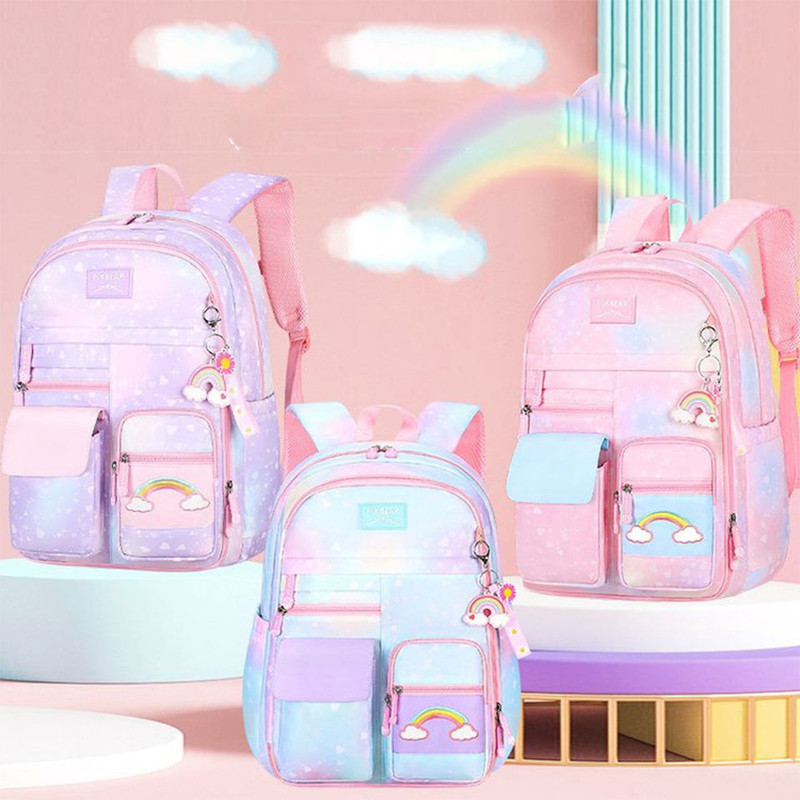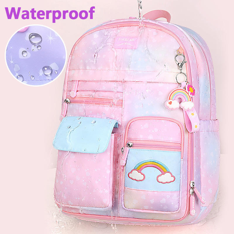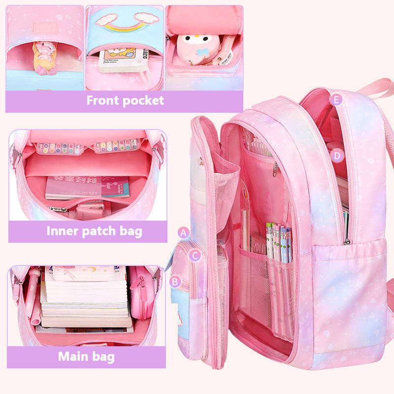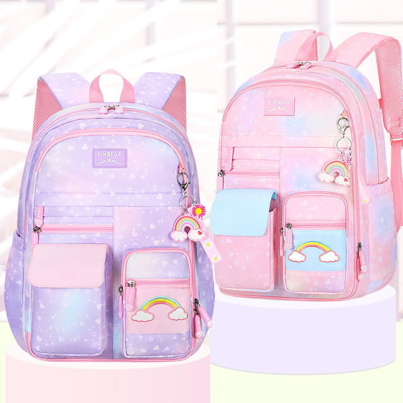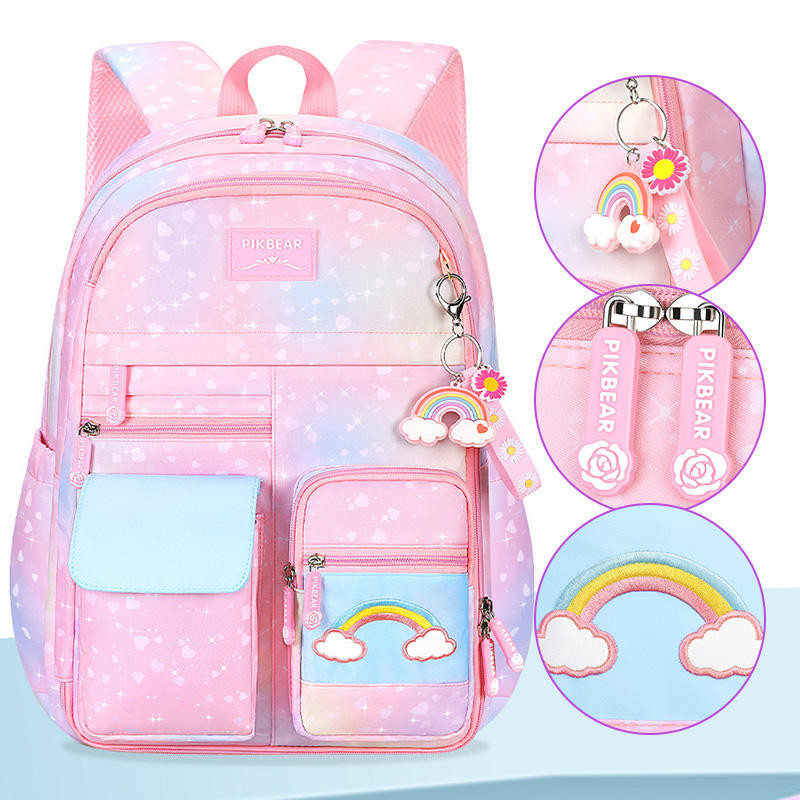 کوله پشتی مدل رنگین کمان یک کوله پشتی بچه گانه بسیار نرم و با دوام است.و کیفیت پارچه و دوخت بسیار بالایی دارد. بدنه کیف ضد آب waterproof و ضد خش می باشد. این کوله پشتی دارای دو محفظه اصلی بزرگ، یکی برای قرار دادن کتاب و وسایل و دیگری برای لوازم التحریر میباشد.در جلوی کیف 4جیب زیپدار و یک جیپ چسبی و در پشت کوله یک جیب زیپدار دیگر قرار دارد همچنین دارای جای مخصوص قرار دادن بطری آب در دو طرف کیف است. این محصول دارای سرزیپ های بزرگ طرحدار جهت سهولت استفاده کودکان از کیف و دارای دسته در بالای کیف برای دست گرفتن کودک می باشد.