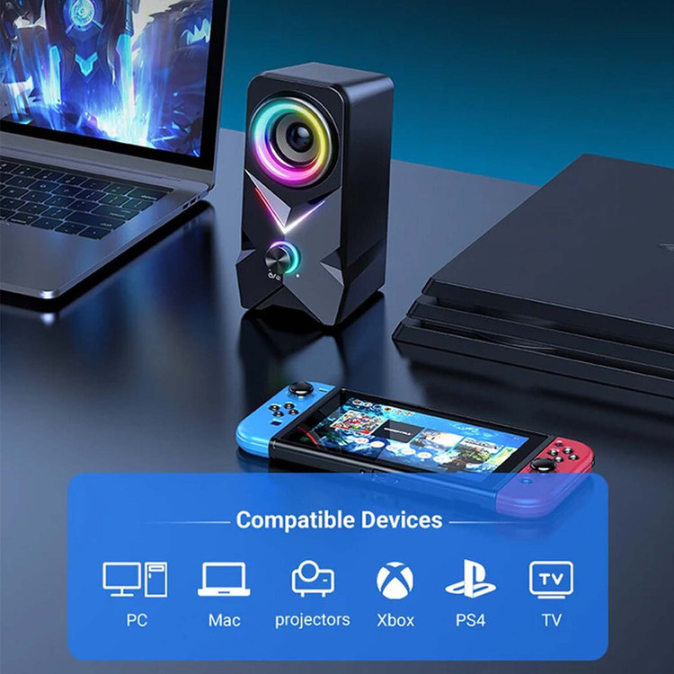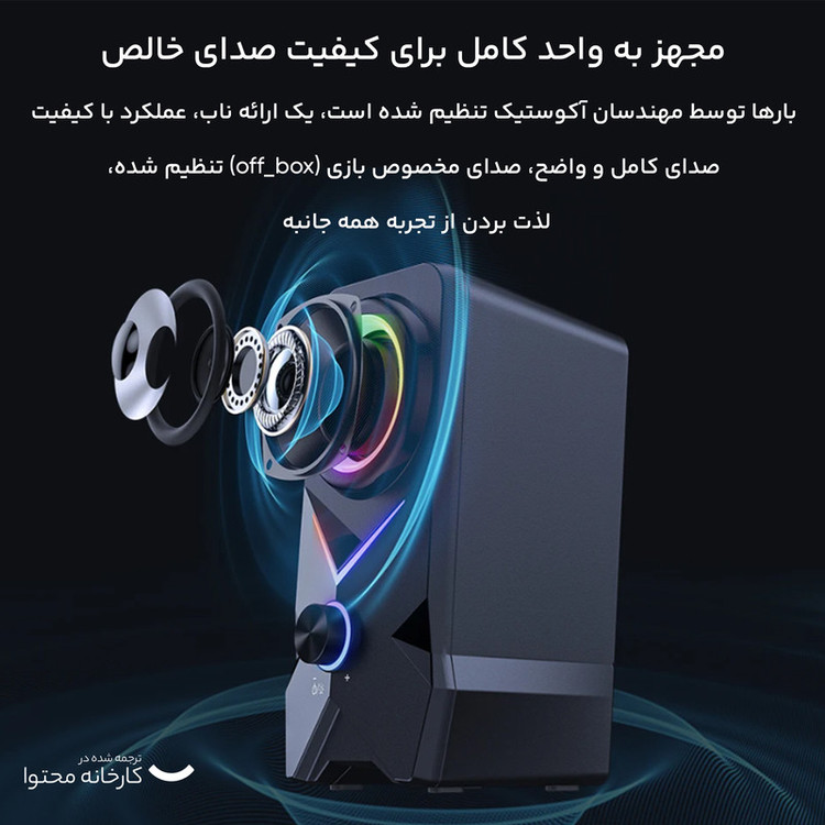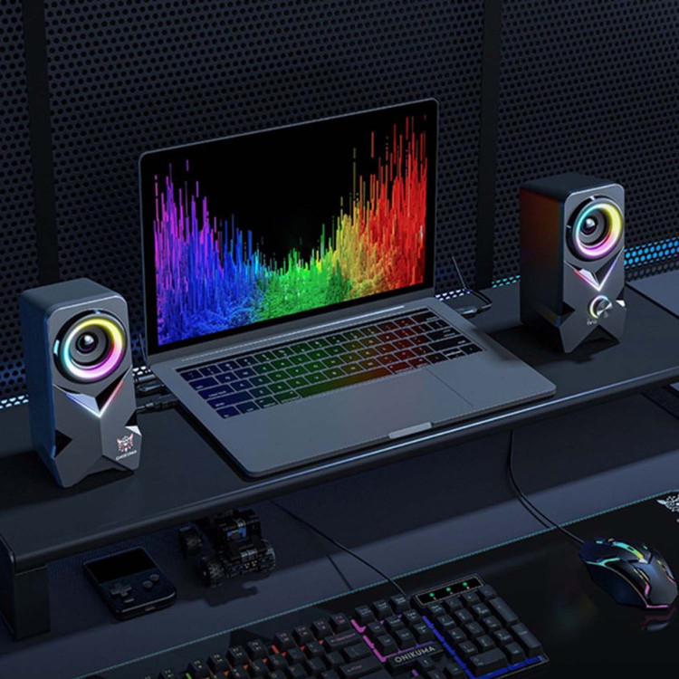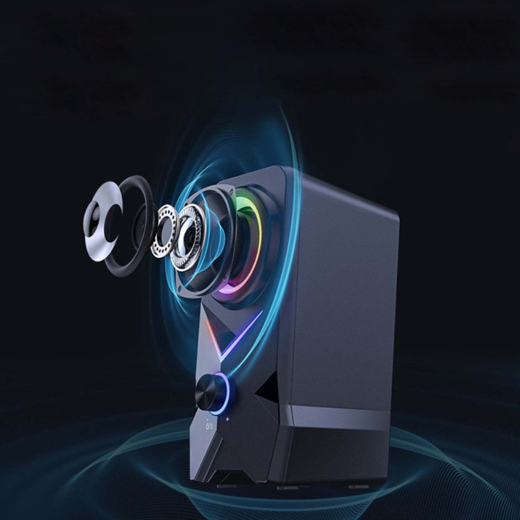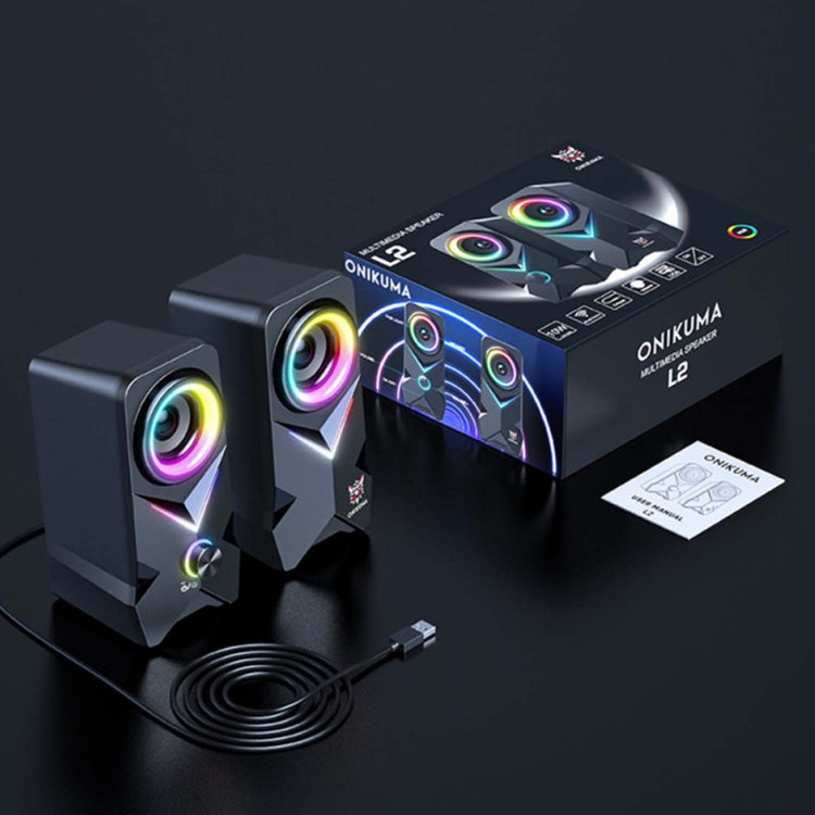 اسپیکر اونیکوما مدل L2 یک اسپیکر دسکتاپ بلوتوث و کابلی با کیفیت و دارای RGB است که میتواند صدای استریو با کیفیت بالا را تولید کند. این اسپیکر دارای نور RGB با مودهای رنگی مختلف و مود صدا میباشد .طراحی گیمینگ و شیک این محصول با کیفیت با هر دکوراسیونی سازگار است. این محصول از رابطهای اتصال USB و Bluetooth استفاده میکند و به شما این امکان را میدهد که از طریق بلوتوث و یا کابل usb به هر سیستمی متصل شوید، اونیکوما L2 دارای کلید چند حالته برای تنظیم صدا و تغییر نوع اتصال و RGB است. اسپیکر پیشرو میتواند فرکانسهای پایین تا 60 هرتز و بالا تا 20 کیلوهرتز را پخش کند و توان خروجی هر کدام از بلندگوهای آن 5 وات است. اسپیکر اونیکوما گزینهای مناسب برای گوش دادن به موسیقی، تماشای فیلم و بازی کردن است.