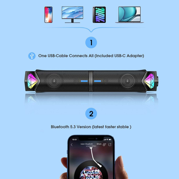 اسپیکر اونیکوما مدل L1 یک اسپیکر دسکتاپ بلوتوث و کابلی با کیفیت و دارای RGB است که میتواند صدای استریو با کیفیت بالا را تولید کند. این اسپیکر دارای نور RGB با مودهای رنگی مختلف و مود صدا میباشد .طراحی عمودی و افقی شیک و گیمینگ این محصول با کیفیت با هر دکوراسیونی سازگار است. این محصول از رابطهای اتصال USB و Bluetooth استفاده میکند و به شما این امکان را میدهد که از طریق بلوتوث و یا کابل usb به هر سیستمی متصل شوید، اونیکوما L1 دارای کلید چند حالته برای تنظیم صدا و تغییر نوع اتصال و RGB است. اسپیکر پیشرو میتواند فرکانسهای پایین تا 60 هرتز و بالا تا 20 کیلوهرتز را پخش کند و توان خروجی هر کدام از بلندگوهای آن 5 وات است. اسپیکر اونیکوما گزینهای مناسب برای گوش دادن به موسیقی، تماشای فیلم و بازی کردن است.