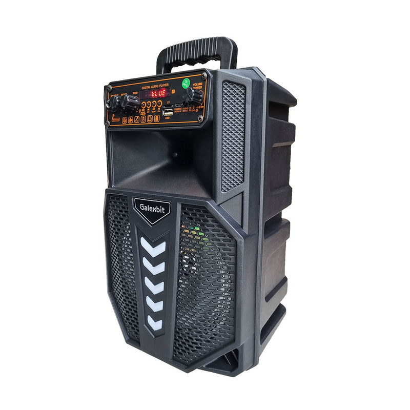 بر روی بدنه اسپیکر هشت اینچ گلکسبیت دکمه هایی با کاربرد روشن/خاموش، کنترل پخش موسیقی، کنترل حجم صدا به کار رفته است. دیگر ویژگی این اسپیکر کیفیت و وضوح صدا آن است.