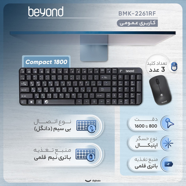 کیبورد و ماوس بی سیم بیاند مدل BMK-2261RF، سوییچ ممبران، Compact 1800