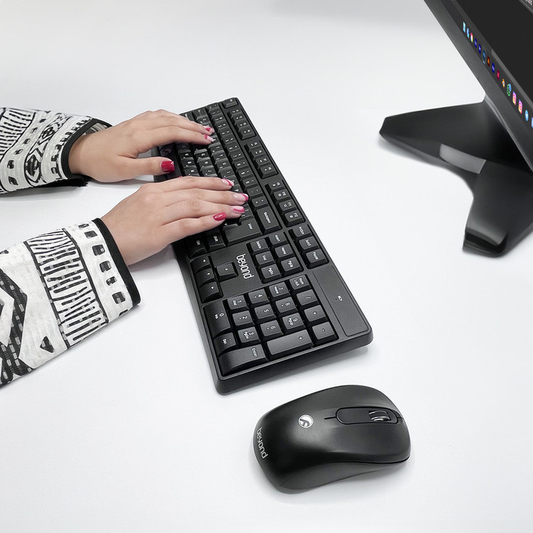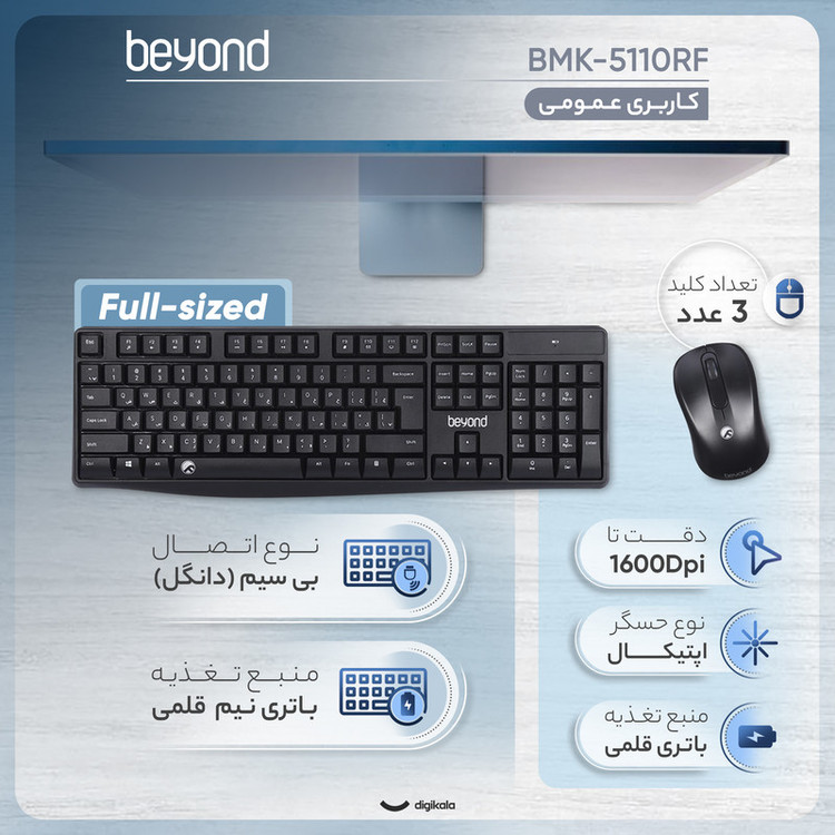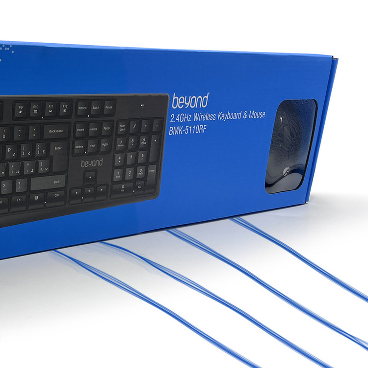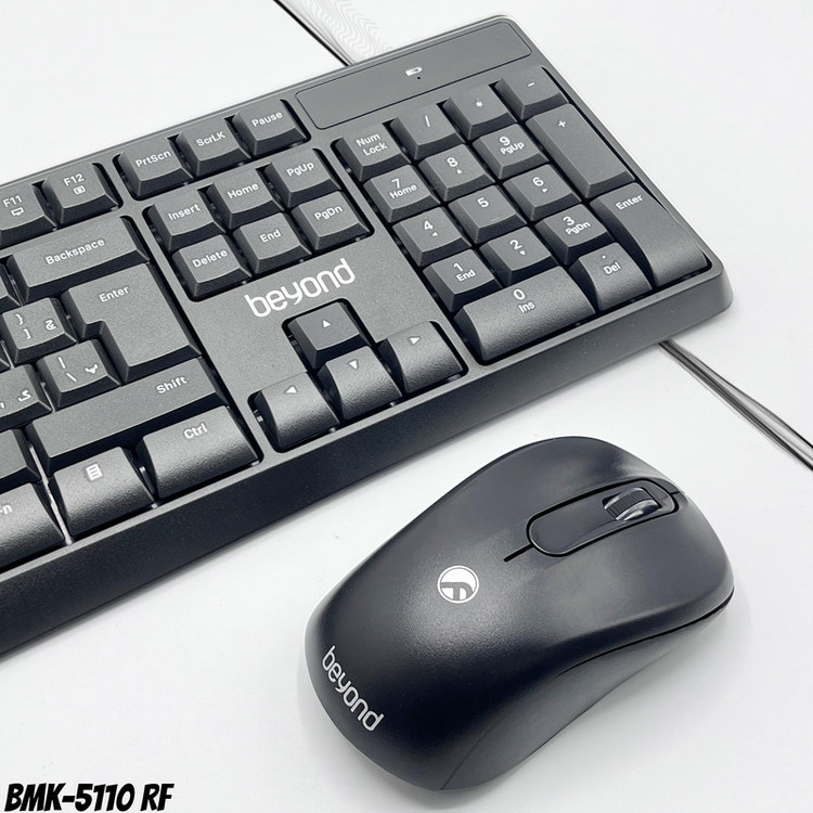 مجموعهی کیبورد و ماوس بیسیم بیاند BMK-5110RF، یک گزینهی اقتصادی برای مصارف خانگی و اداری است. این مجموعه شامل یک کیبورد Full-Size با کلیدهای ممبران (نرم و کمصدا) و یک ماوس اپتیکال با دقت 1200 DPI است.