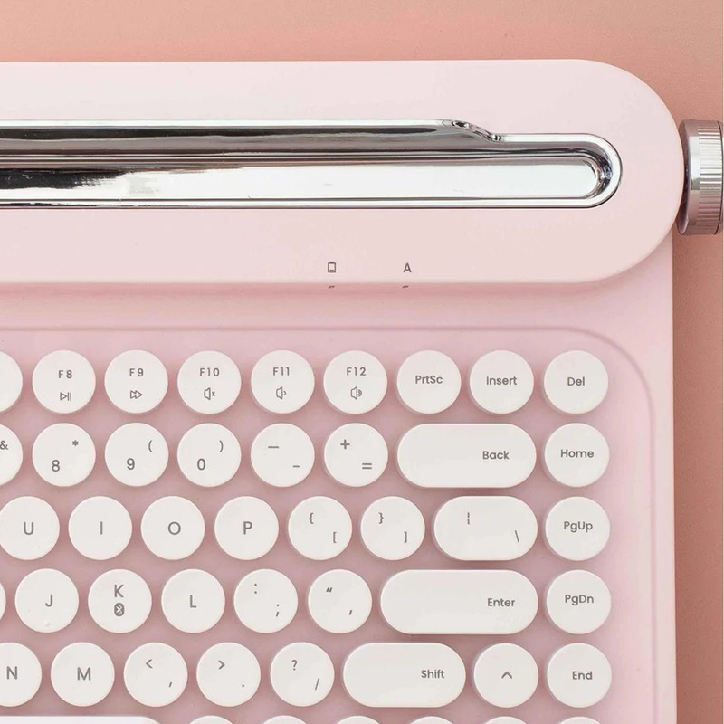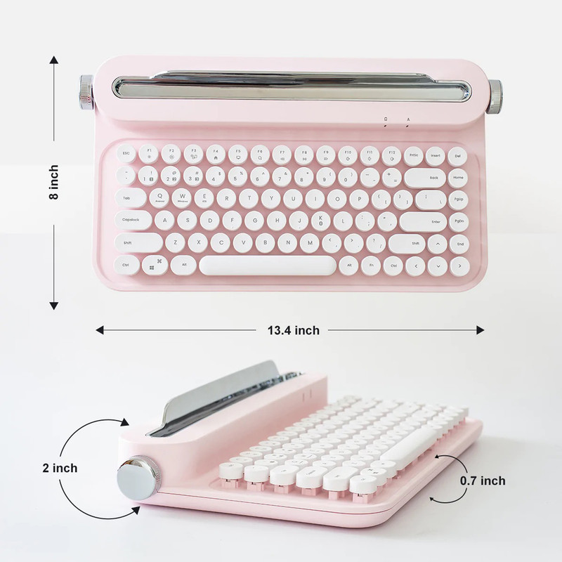 سوییچهای ممبران با عمر مفید ۲۰ میلیون ضربه، صدای کمتری نسبت به کیبوردهای مکانیکال دارند و برای استفادههای خانگی و اداری مناسباند. علاوه بر آن، ۸۶ کلید به همراه ۱۲ کلید میانبر، امکانات لازم برای انجام کارهای روزمره و میانبرهای رایج را فراهم میکند. پایههای قابل تنظیم و ضد لغزش نیز کمک میکنند تا هنگام تایپ، کیبورد روی سطح ثابت بماند. بخش بالایی کیبورد یک شیار مخصوص دارد که میتوان از آن بهعنوان استند تلفن همراه یا تبلت استفاده کرد و حس تایپ با ماشین تحریر را به کاربر منتقل میکند. به لطف مصرف انرژی بهینه، عمر باتری قلمی تا ۱۲ ماه ماندگاری دارد و برای بسیاری از کاربران میتواند تجربهای بیدردسر و طولانی باشد.