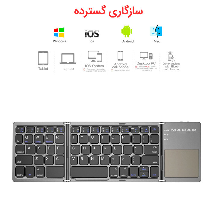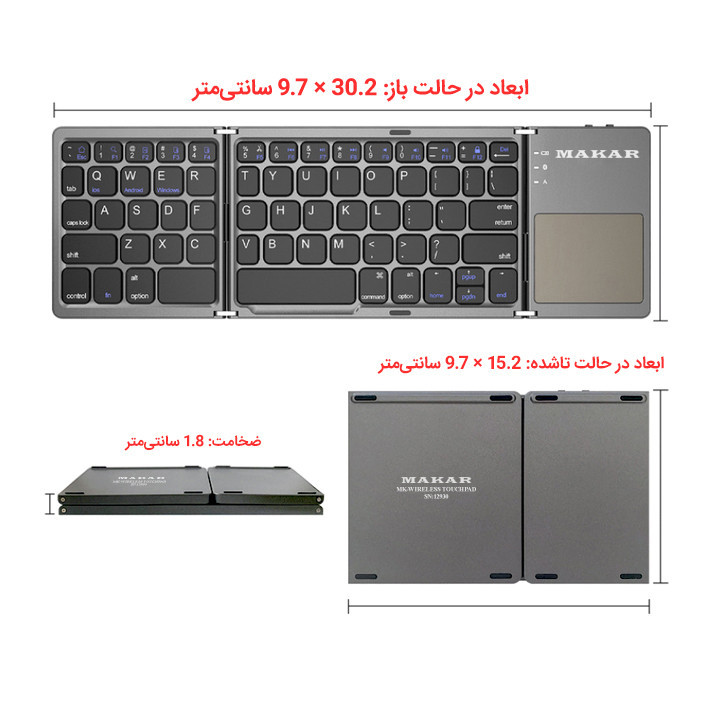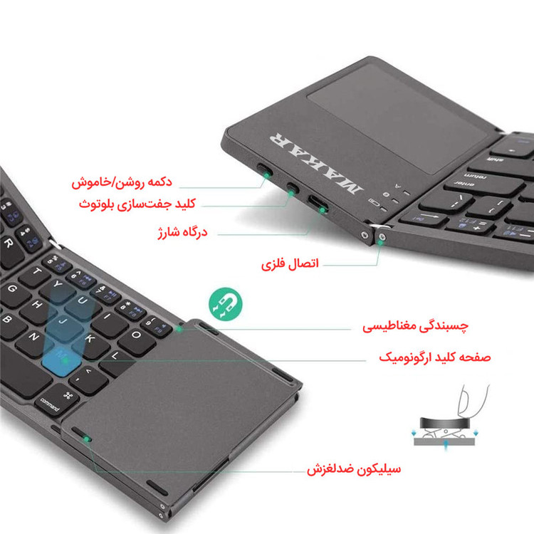 کیبورد تاشو ماکار مدل MK-WIRELESS-TOUCHPAD