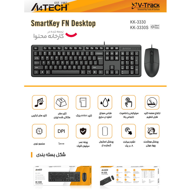 کیبورد و ماوس ای فورتک مدل KK-3330S