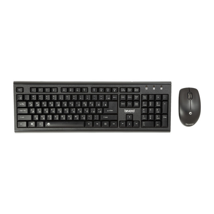 کیبورد و ماوس بیاند (کمبو) BMK-8320 RF از طریق اتصال گیرنده وایرلس USB به دستگاه متصل میشود. تعداد کلیدهای کیبورد 104 عدد است و دارای کلیدهای ترکیبی یا Function Keys میباشد.