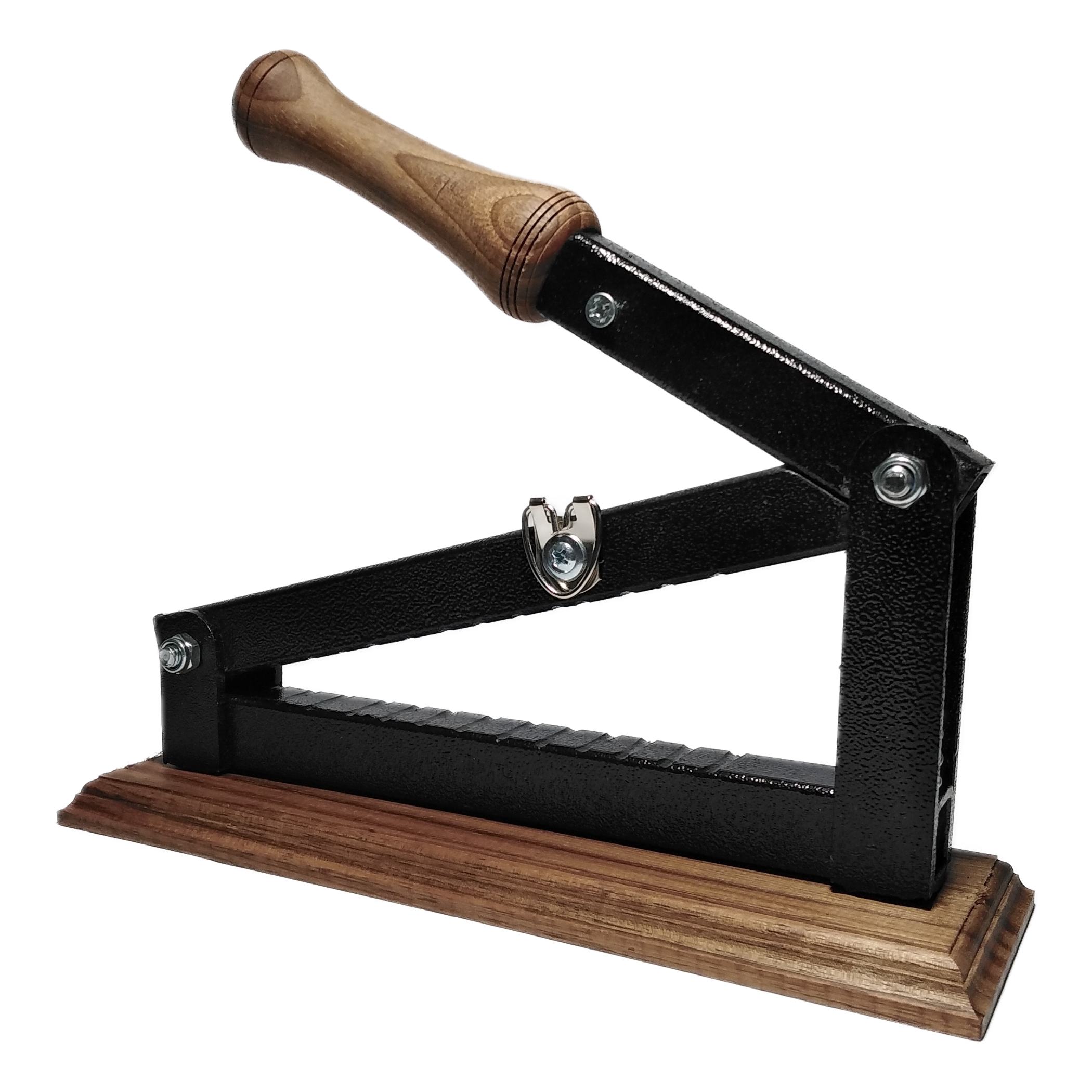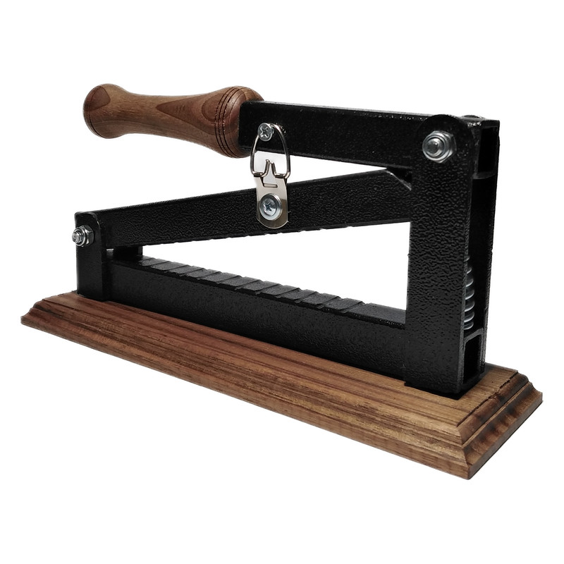 دستگاه بر روی صفحه چوب گردو سوار شده است تا جهت استقرار بهتر و از ایجاد خراش و ضربه روی شیشه، کابینت و فرش جلوگیری کند.
