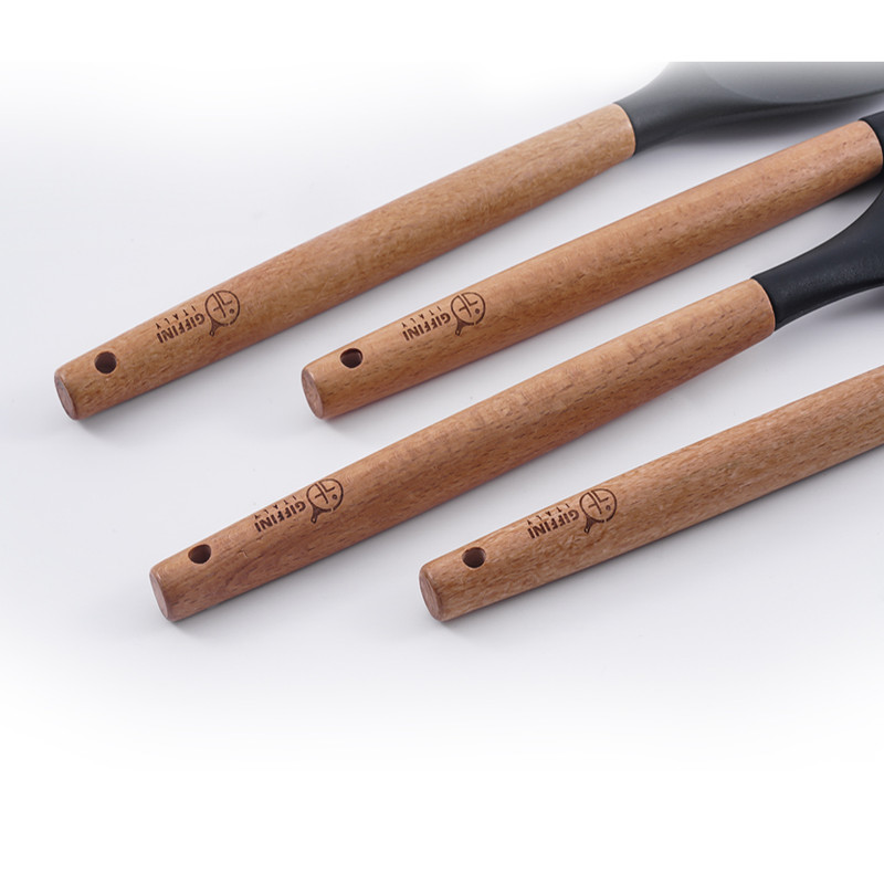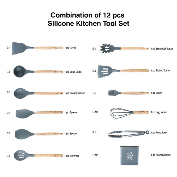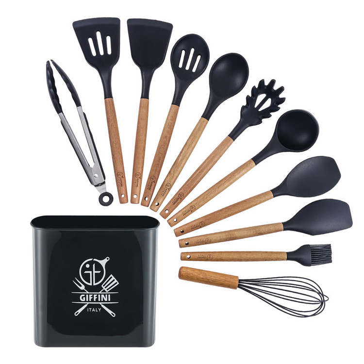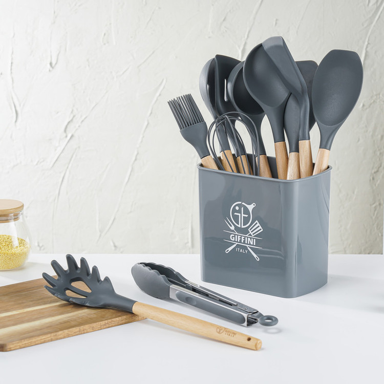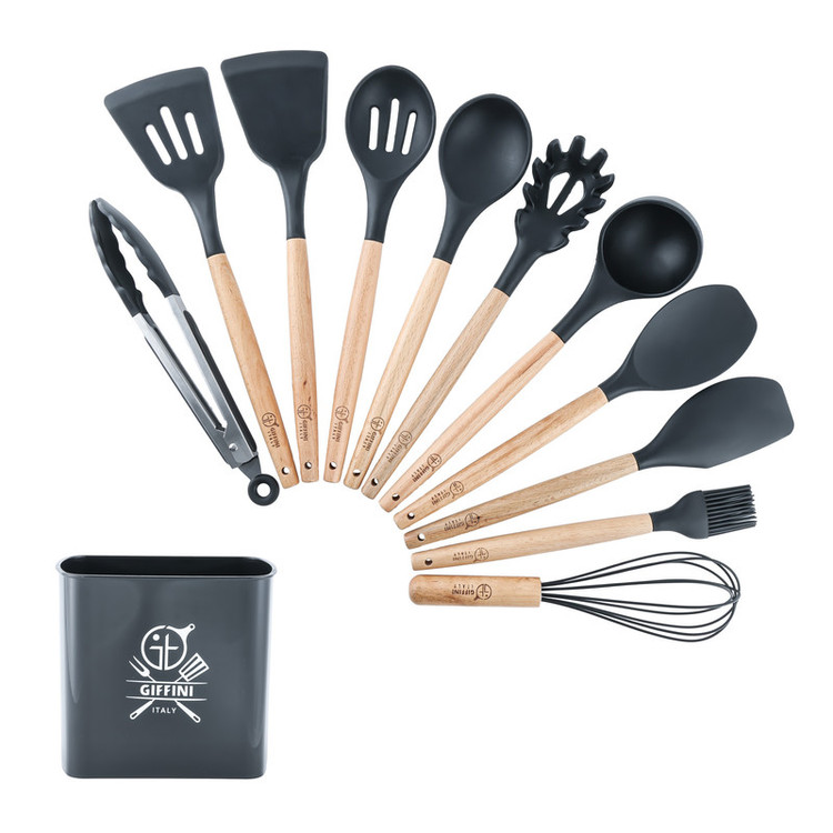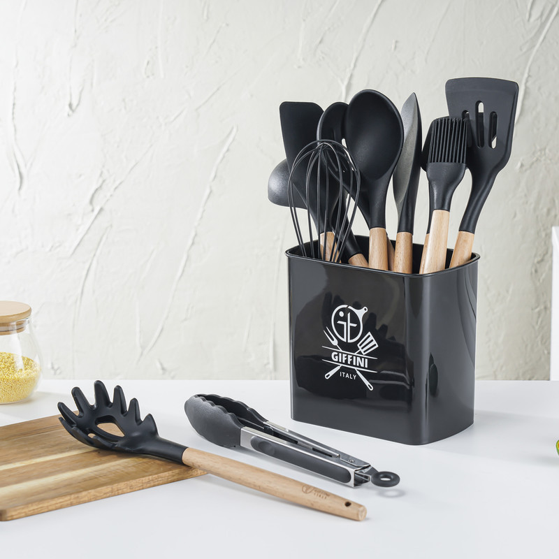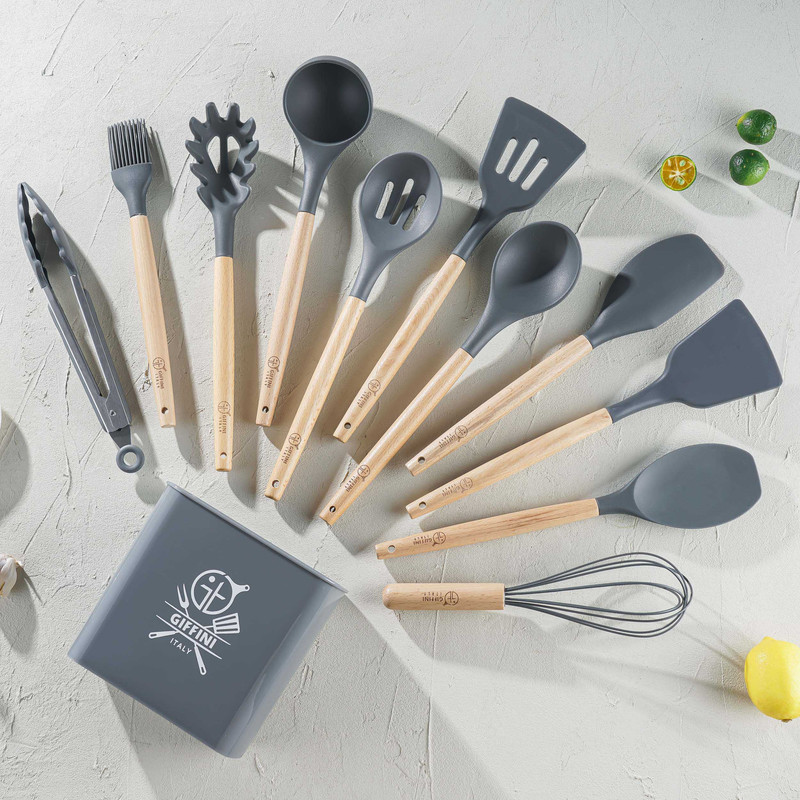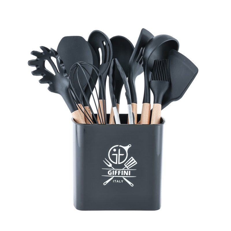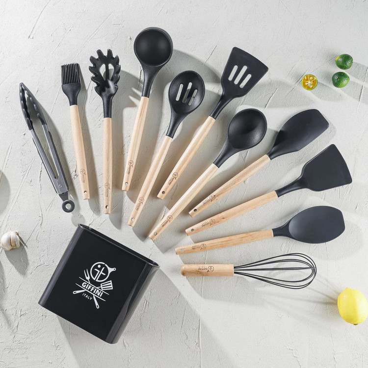 سرویس کفگیر ملاقه GIFFINI ساخته شده از با کیفیت ترین مواد سیلیکون با استاندارد FDA و بدون BPM ، دسته های چوبی از جنس بامبو میباشد.بامبو از یک متصل کننده فلزی میانی استفاده شده که . سیلیکون به کار رفته در این محصول ساخته شده از مواد غیر سمی ، بی بو و سازگار با محیط زیست است. این مجموعه متنوع که شامل انواع کفگیر ملاقه فرچه لیسک انبر میباشد در برابر درجه حرارت سرما تا -40و گرما 230+ درجه سانتی گراد مقاومت دارد. انعطاف پذیری ، رویه های نرم از خراشیدن و آسیب رساندن به ظروف شما جلوگیری میکند و باعث میشود اشپزی لذت بخش تر شود . این مجموعه متشکل از 12 عدد کفگیر ملاقه و ظرف نگهداره می باشد.