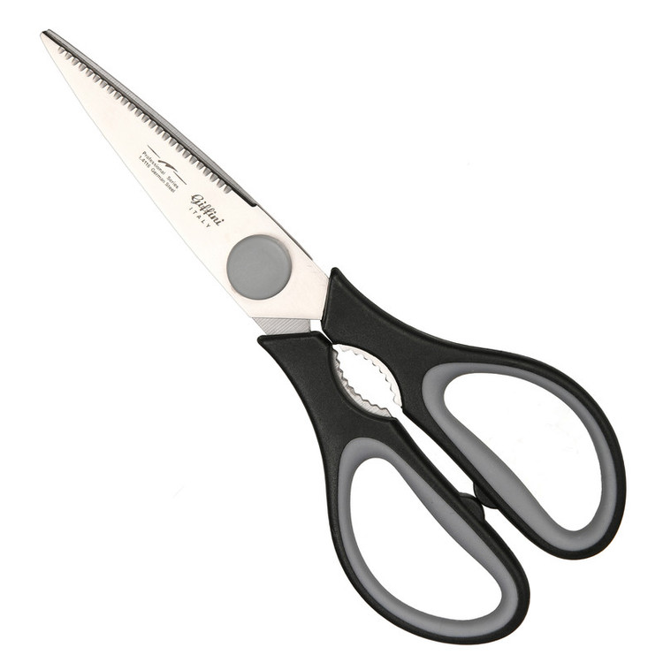 قیچی مخصوص اشپزخانه - خرد کردن مرغ بسیار تیز و برنده -اصل GIFFINI -مناسب برش نان -برای شکستن استخوان مناسب نمیباشد .داخل دسته سیلیکون نرم.دارای گردو شکن وسط دسته قیچی.کیفیت عالی و فوق العاده.دارای بسته بندی عالی