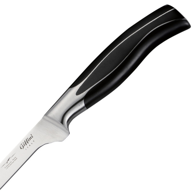 چاقوی آشپزخانه جی فی نی از بهترین و معتبر ترین برندهای جهان میباشد که تمام مراحل طراحی ان در شرکت GIFFINI ایتالیا انجام میشود و برای تولید ان از بهترین و با کیفیت ترین الیاژ جهان استفاده شده که در کار کردن با این چاقو شما ان را کاملا حس کرده و لذت آشپزی را برای شما چند برابر خواهد کرد و بدلیل طراحی دسته و بدنه یک تکه این چاقو هرگز دسته ان جدا نخواهد شد و شما را سالیان سال از خرید مجددا ان بی نیاز خواهد کرد.