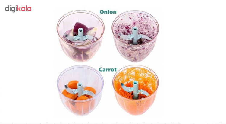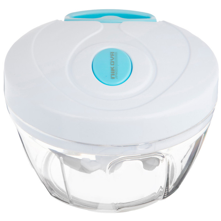 بیشتر اوقات برای خرد کردن سریع سبزیجات و میوه ها دچار مشکل میشویم و دنبال وسیله ای میگردیم که سبک و کوچک و براحتی تمام این کارها را برای ما انجام دهد.پیشنهاد ما به شما خرد کن دستی نیکووا مدل NMC-83 است. چیزی که این دستگاه را از دیگر محصولات متمایز میکند، مکانیزم چرخش آن است. به این صورت که روی درِ خردکن یک دستهی پلاستیکی وجود دارد که به یک ریسمان بسیار محکم متصل است. با کشیدن این دسته که داخل عکس میبینید تیغه آن به چرخش درمیآید و بسته به سرعت کشیدن ریسمان دارد که سرعت چرخش را کم و زیاد می کند. امکان پارهشدن آن به هیچ وجه وجود ندارد و حتی اگر روی بدنه ساییده شود، باعث خوردهشدن بدنهی پلاستیکی آن نمیشود. از طرف دیگر سیستم چرخشی آن که حالت کشیدن نخ با دسته را دارد، باعث خردشدن سریعتر شده و دست کمتر خسته میشود. تیغههای این محصول بسیار تیز است و حتی با پرکردن کاسه از سبزیجات و... کند نمیشود و همچنین گیر نمیکند و میتوانند چند سال با کیفیت اولیه برای شما کار کنند .نکتهی بسیار مهم دیگر این است که لبههای تیغهها رو به بالا هستند و باعث میشوند مواد درون خردکن به بالا پرتاب شده و تیغههای ردیف بالایی بدون استفاده نباشند. زیر کاسهی این محصول، یک نوار لاستیکی قرار گرفته است که باعث چسبندگی آن به زمین و سرنخوردن آن میشود؛ بنابراین میتوانید با یک دست بهآرامی خردکن را نگه داشته و با دست دیگر نخ را بکشید؛ بدون آنکه کاسه تکان بخورد.