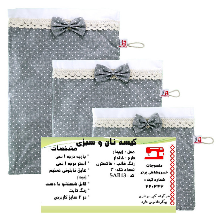کیسه نان و سبزی منسوجات خسروشاهی برتر مدل زیپدار طرح خالدار کد SAB13 مجموعه 3 عددی