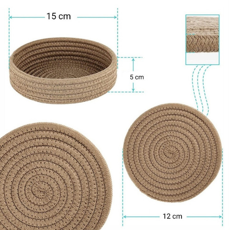 این کالا شامل 4 عدد زیر لیوانی به قطر 12 سانتیمتر و جای نگهدارنده آن ها میباشد.